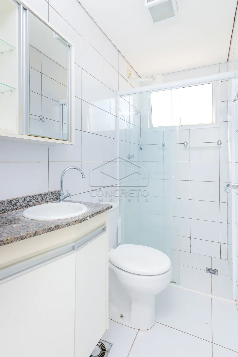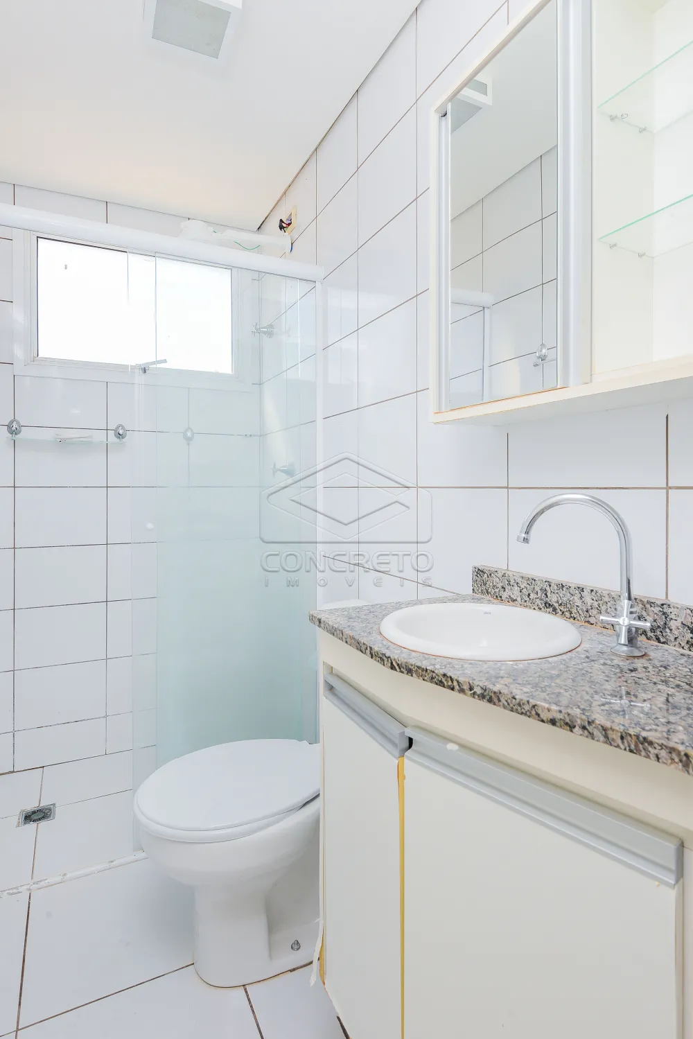 O banheiro conta com box de vidro, chuveiro elétrico e armário, garantindo conforto e funcionalidade para o seu dia a dia.