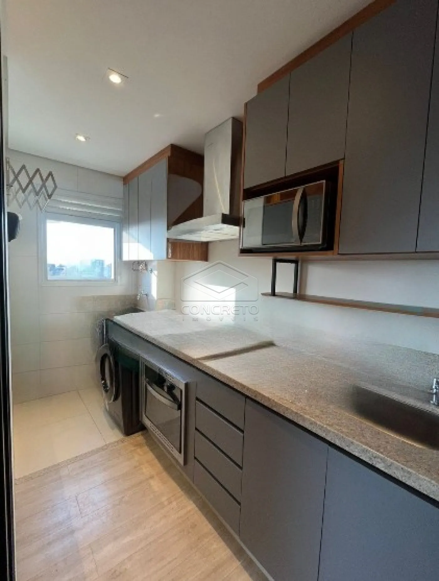 O imóvel é completo em armários, totalmente mobiliado e possui um excelente padrão de acabamento. Conta com uma sala ampla para dois ambientes, integrada à varanda gourmet, proporcionando um espaço agradável para relaxar ou receber amigos.