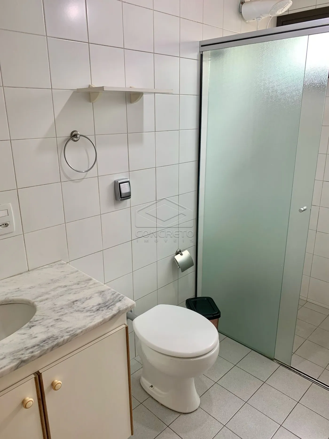 - Banheiro social com acabamentos modernos e práticos.