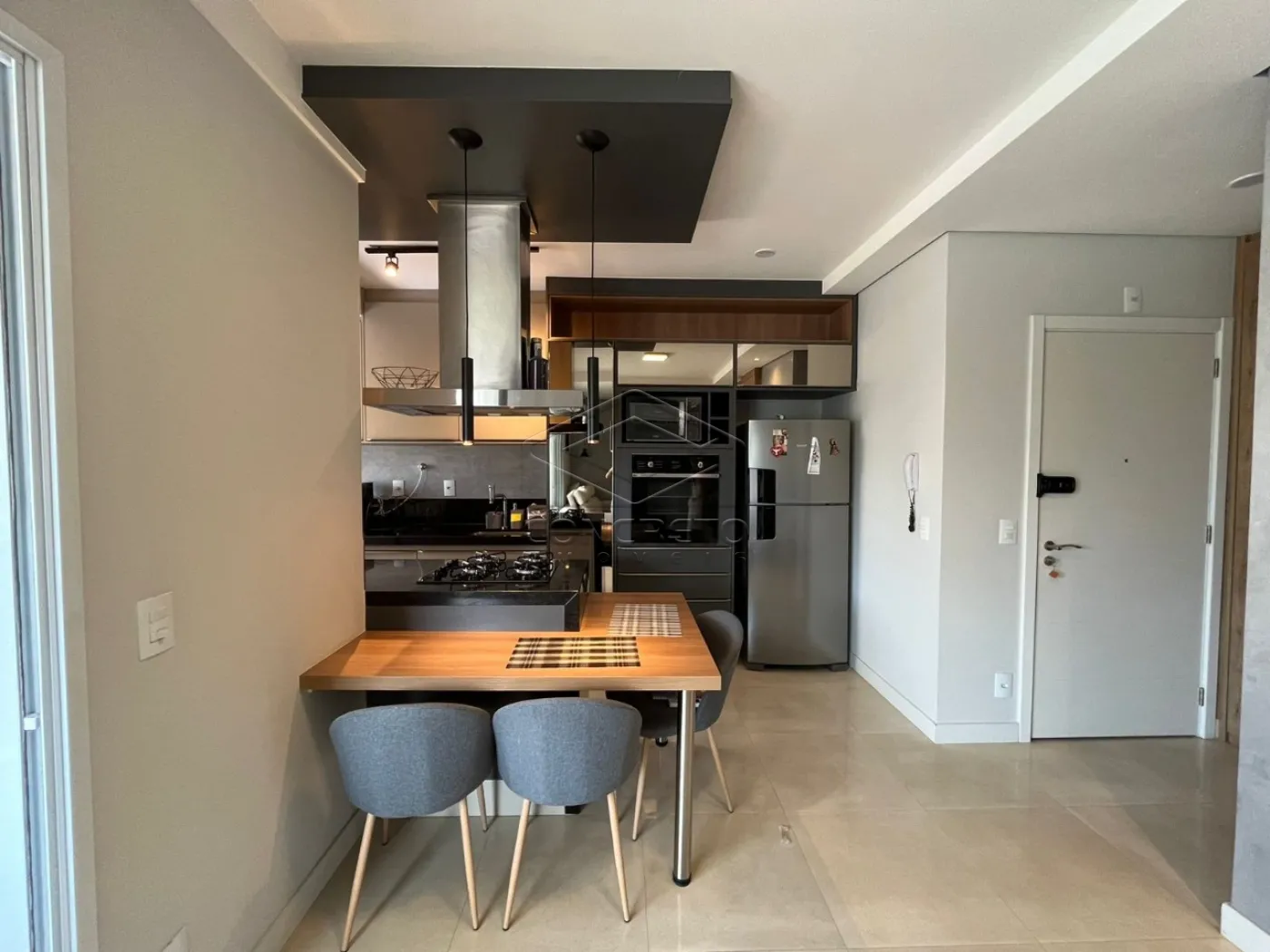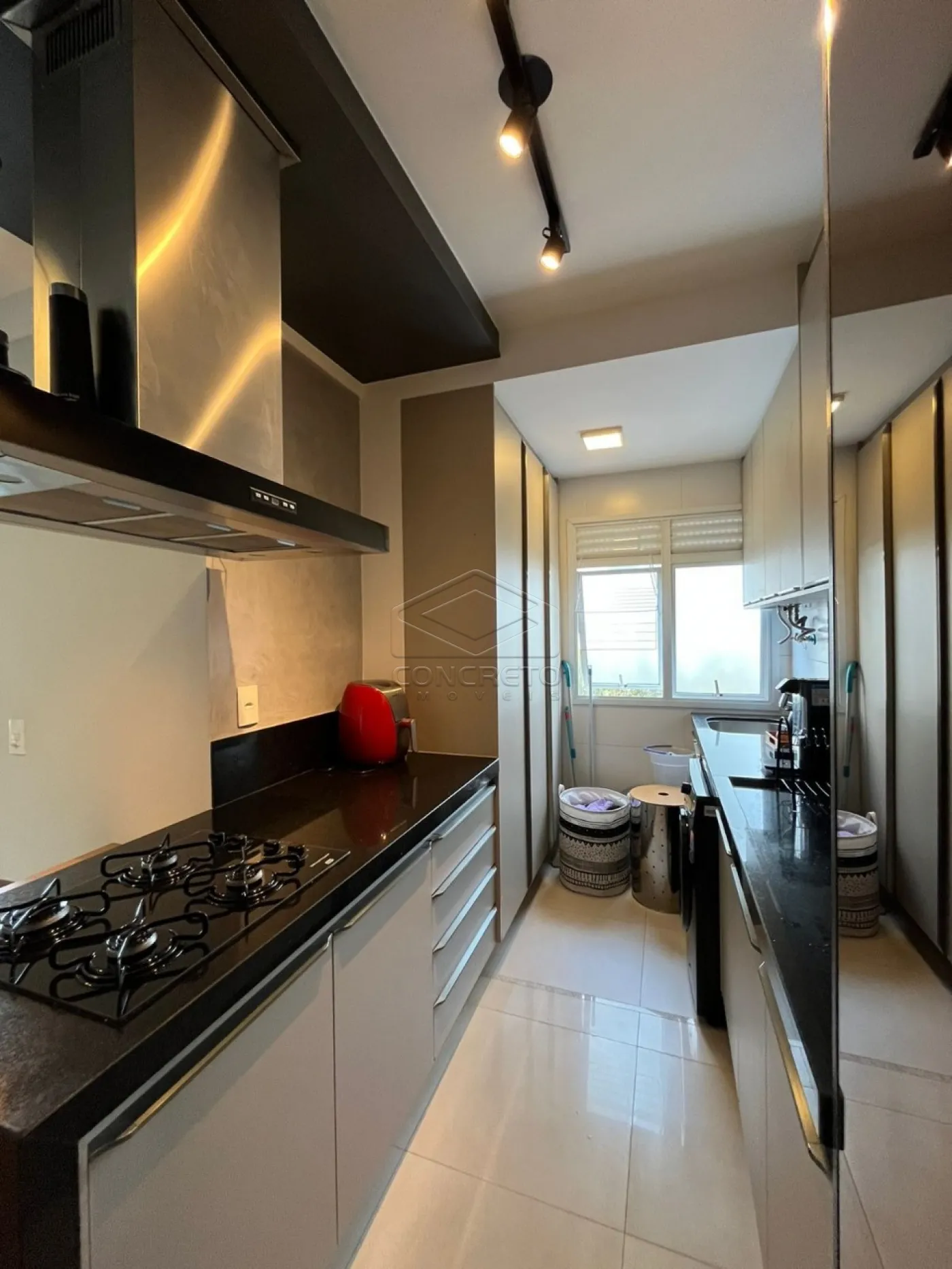 A cozinha é moderna e funcional, equipada com cooktop, forno e coifa, além de lavanderia integrada com lava e seca, proporcionando ainda mais conveniência no dia a dia. Conta também com lavabo e duas suítes, sendo uma delas com closet, garantindo conforto e privacidade.
