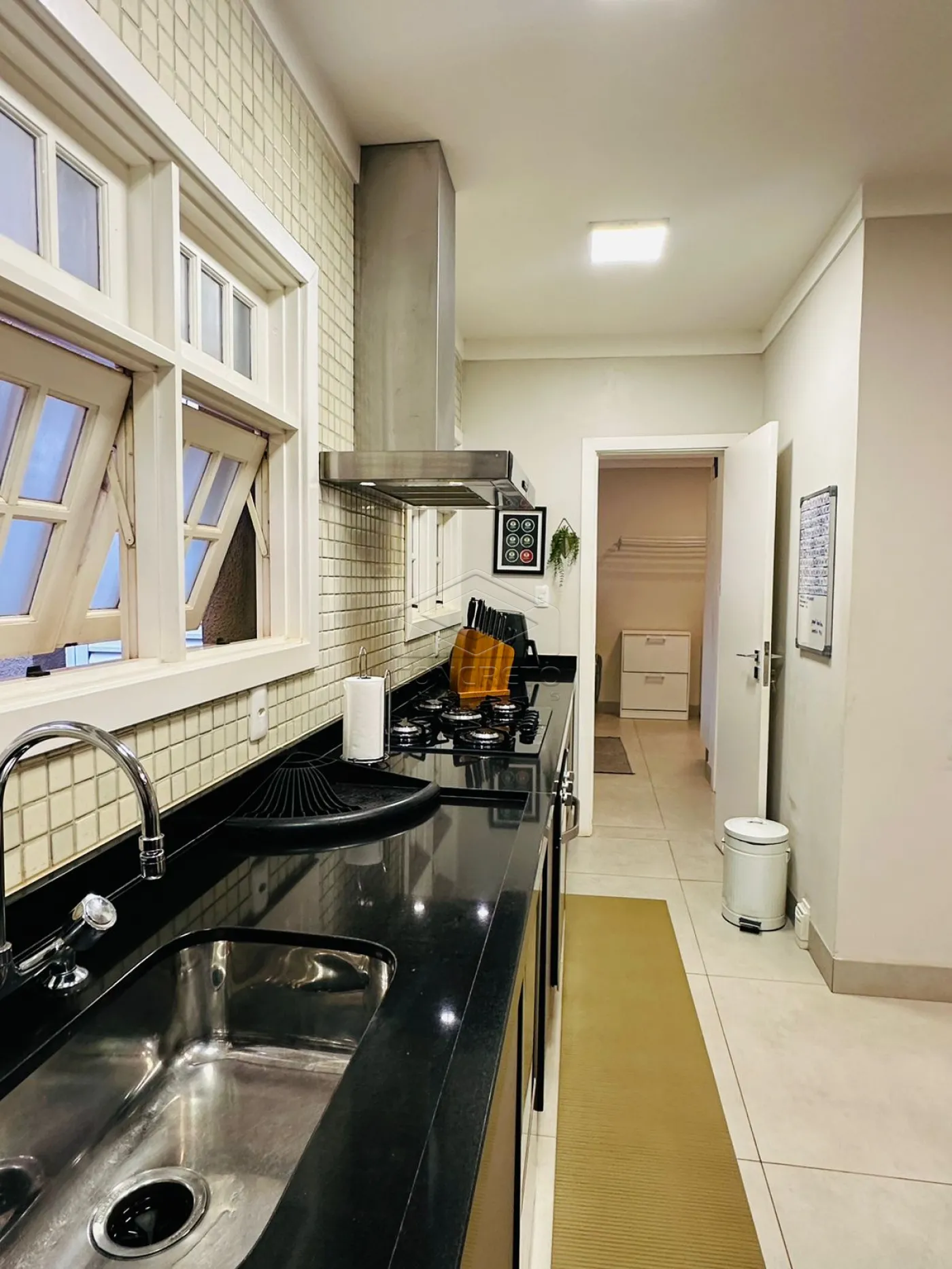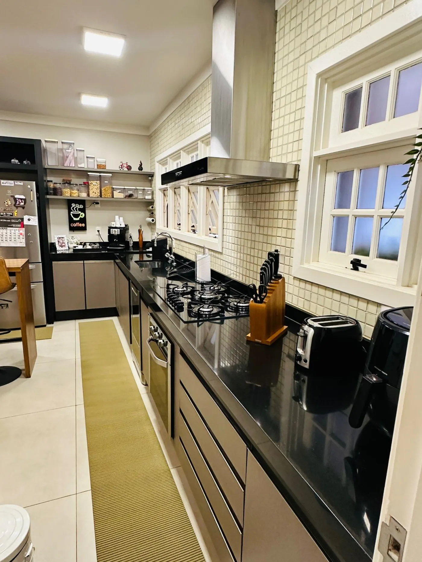 Cozinha Moderna: Equipamentos de última geração, incluindo triturador de alimentos na pia e sistema de gás P-45, ideal para facilitar o preparo de refeições.