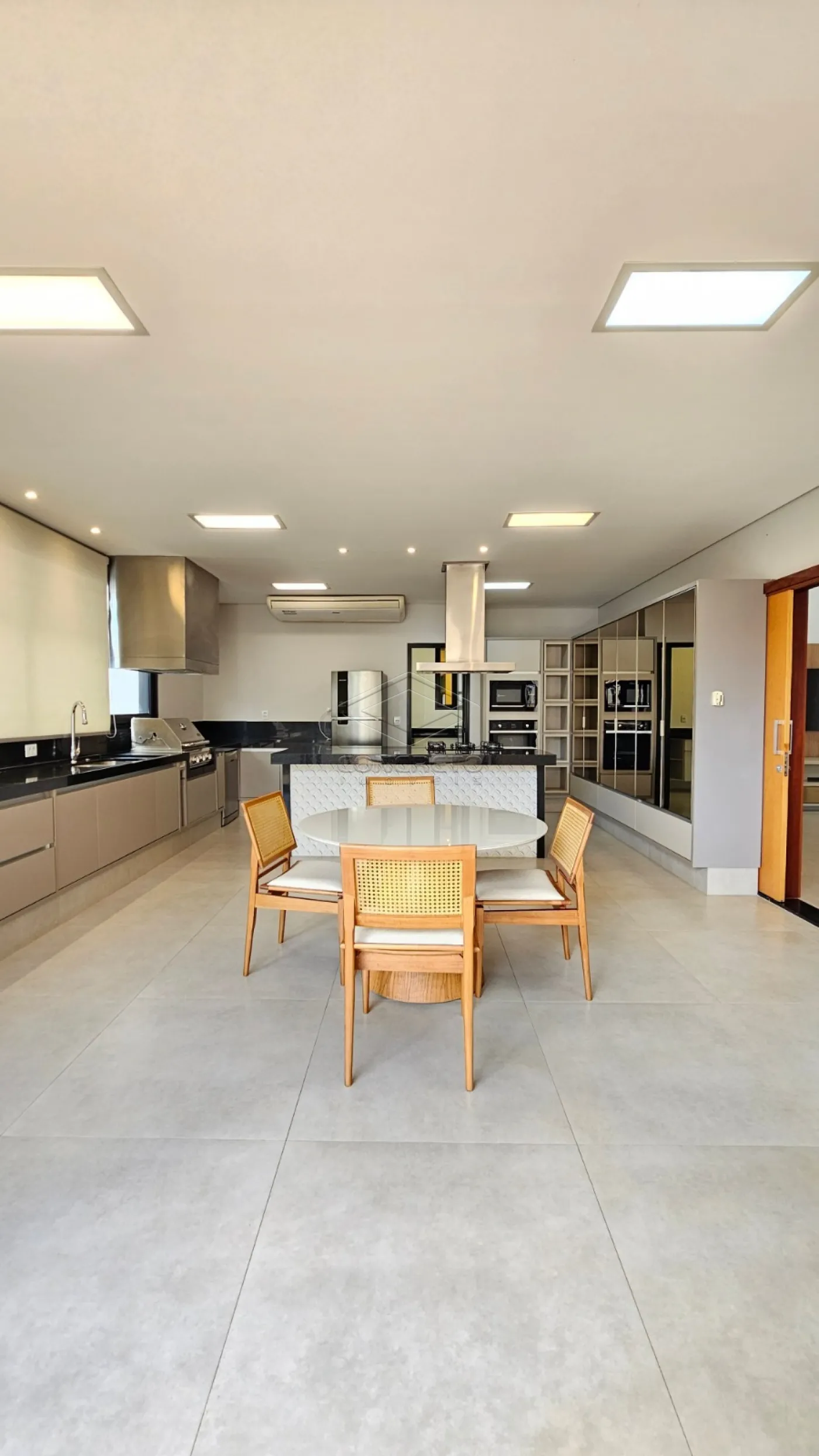 Os ambientes são amplos e bem iluminados, com destaque para a cozinha espaçosa, que integra uma área com churrasqueira, ideal para receber familiares e amigos com conforto e praticidade. O imóvel é repleto de armários planejados, garantindo organização e sofisticação em todos os espaços.