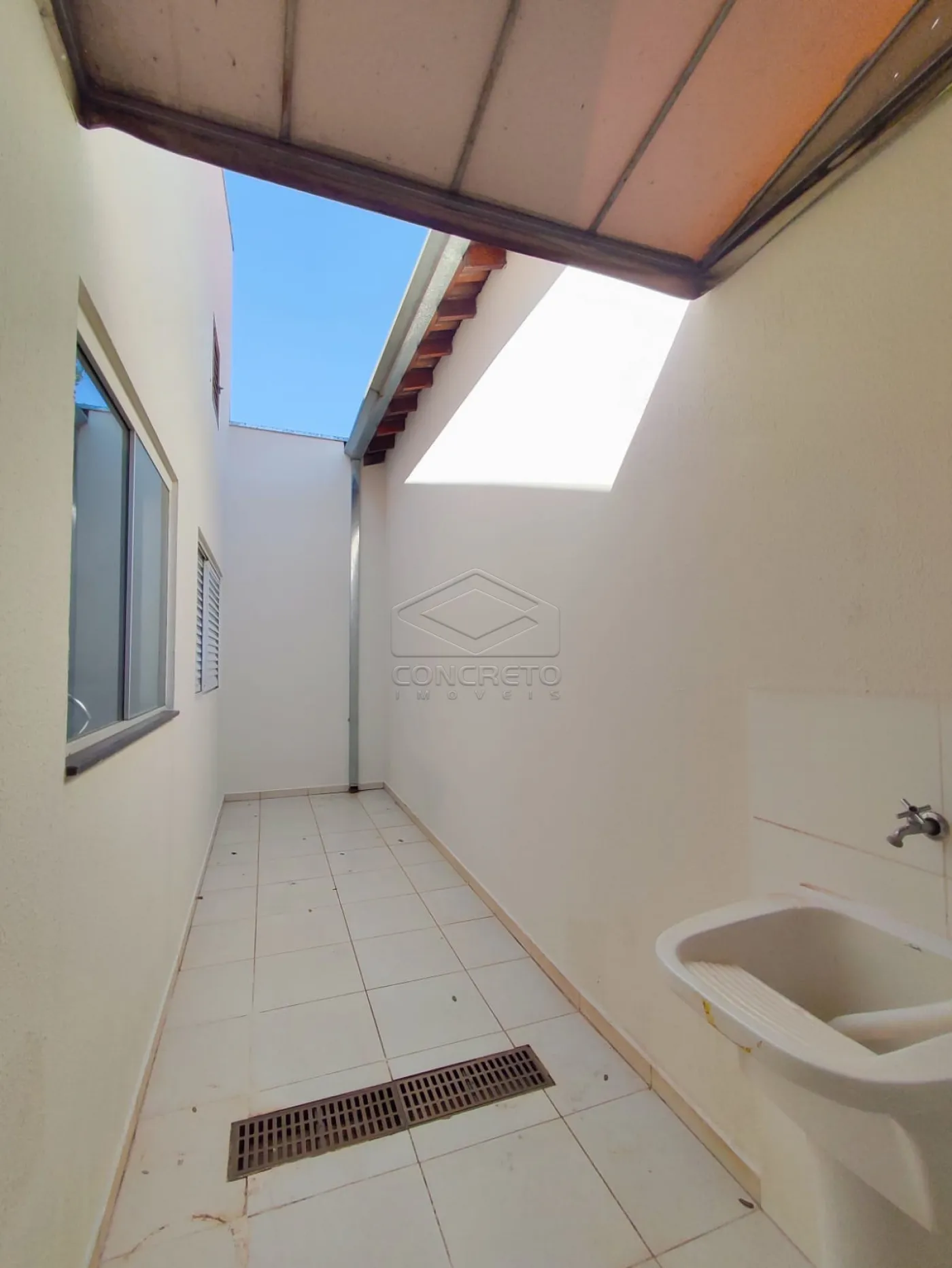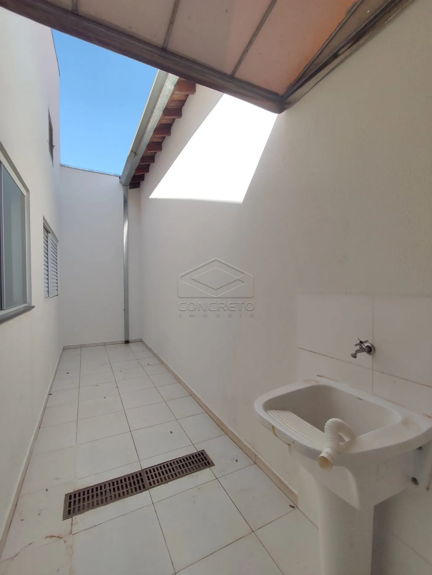 Lavanderia coberta, com bom espaço para organização e serviços