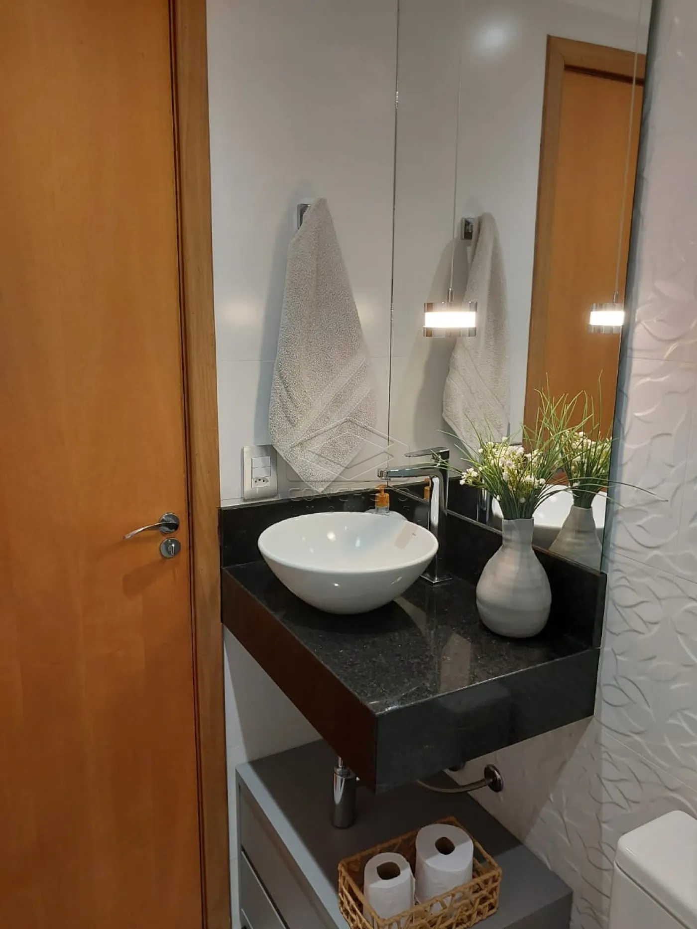 Sala com painel, 02 lustres, espelho, sofá e cortina, possui ligação de ar condicionado pronto, na sala de jantar mesa com 04 cadeiras, na cozinha armário em 02 paredes(planejado), 01 cooktop, e persiana.