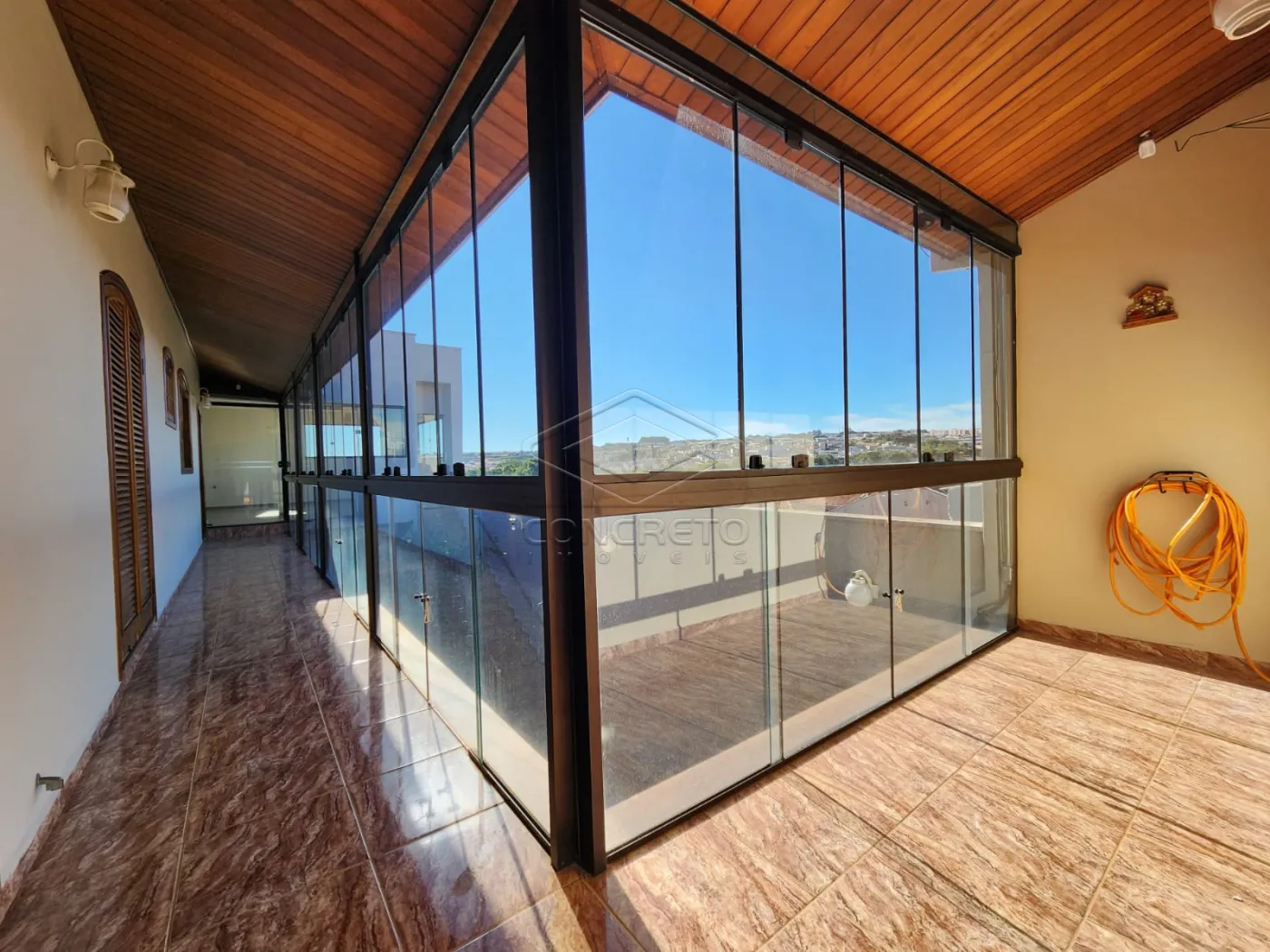 Sala: Sanca iluminada Parede em acabamento 3 D iluminada Porta de madeira pivotante Ar Condicionado Piso laminado Copa: Sanca iluminada Porta de madeira pivotante Piso laminado Cozinha: Armários Planejados Pia de granito e com armário planejado Espaço para coktop em granito Coifa em inox escovado Balcão americano em granito e parede de tijolos de vidro iluminada Sanca com iluminação pendente sobre o balcão americano. Ar condicionado Piso porcelanato Suíte 01: Banheiro com Box blindex Ducha higiênica Quarto com ar condicionado e ventilador de teto Portas de correr com acesso à área gourmet Piso laminado Suite 02: Armário planejado Ar condicionado e ventilador de teto Piso laminado Banheiro com banheira de hidro massagem aquecida Box blindex Sanca e iluminação especial Bancada de granito com louças incepa Ducha higiênica Piso porcelanato Porta de madeira pivotante 01 parede com acabamento de pedra Piso laminado Jardim de inverno: Acabamento em piso, pedra ferro e iluminado Área gourmet: Balcão e pia de granito Churrasqueira eletrica Coberta com forro de madeira Piso Lavanderia/área se serviço: Tanque com cobertura de madeira Quintal com Teto com abertura Piso Garagem: Para dois carros Dois tipos de iluminação, plafon e arandelas Portão com motor rápido e ascendimento automático da garagem na abertura Piso porcelanato Calçada: Acabamento em pedra portuguesa Fachada: Acabamento em pedra ferro e iluminação pontual Energia bifásica Câmeras de monitoramento Cerca elétrica Alarme