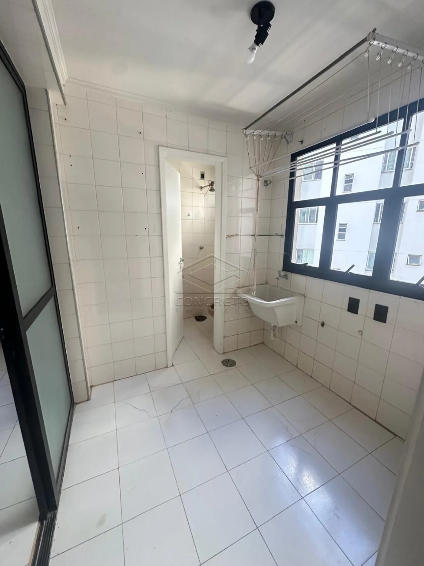 Área de serviço com banheira e depósito