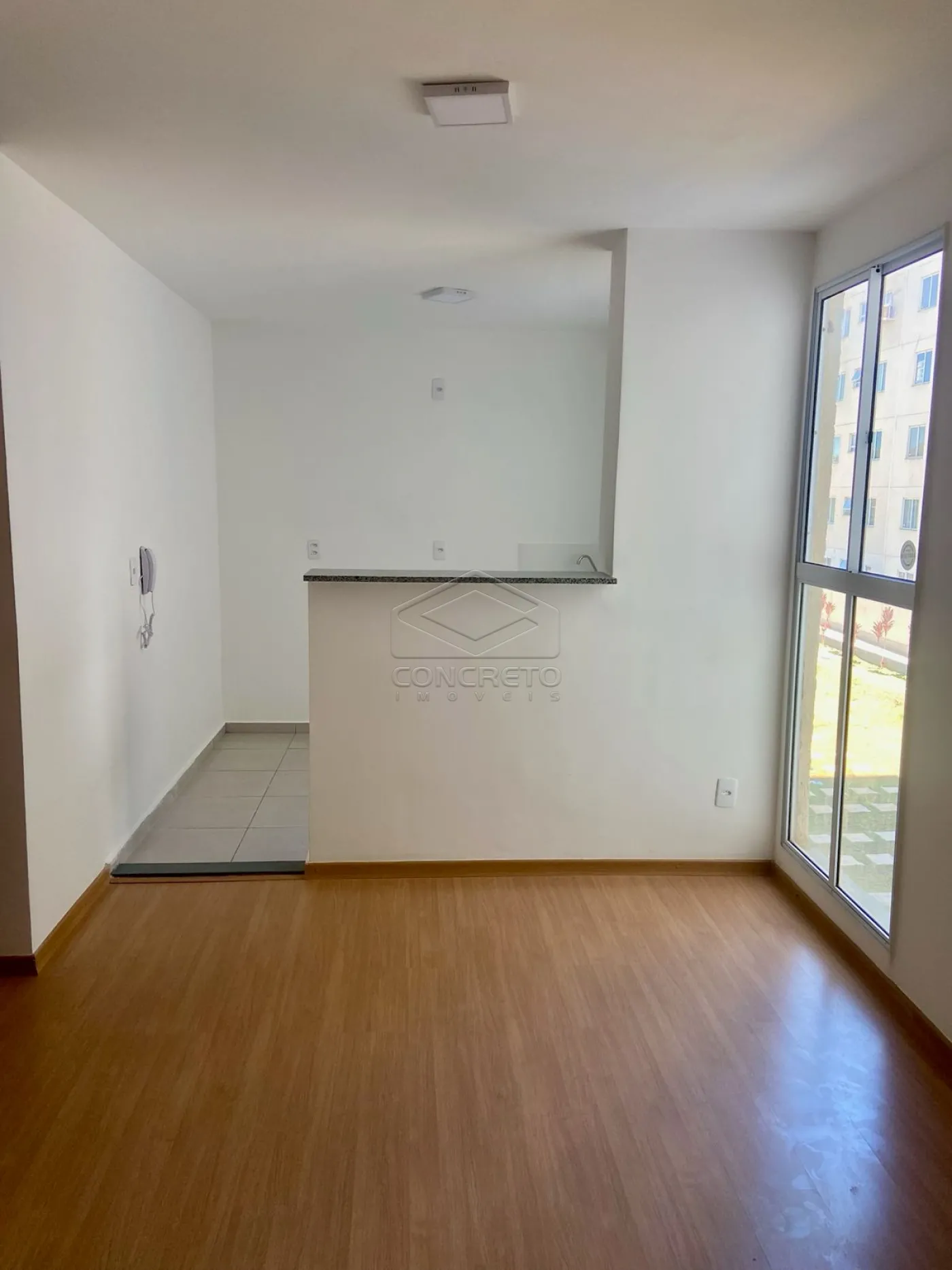 Esta unidade possui vista livre, dois dormitórios, cozinha e salas integradas;
