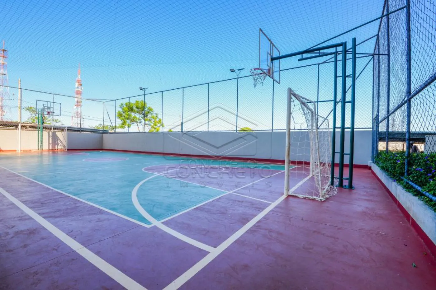 -Quadra poliesportiva, quadra de tênis e campo de futebol