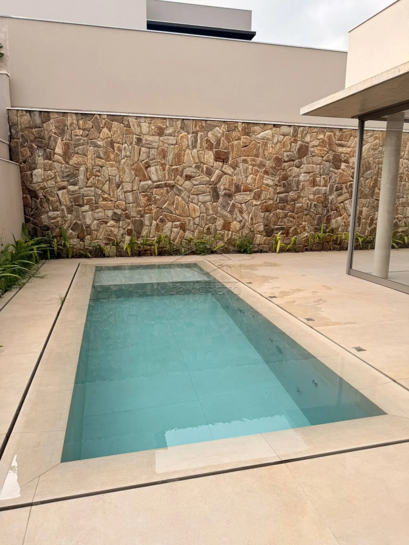 Paisagismo em toda residência, mobiliada com móveis da Aimar;