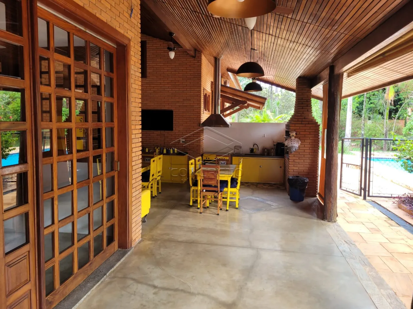 ? Área externa com suíte independente, sauna, espaço gourmet, piscina e pomar.