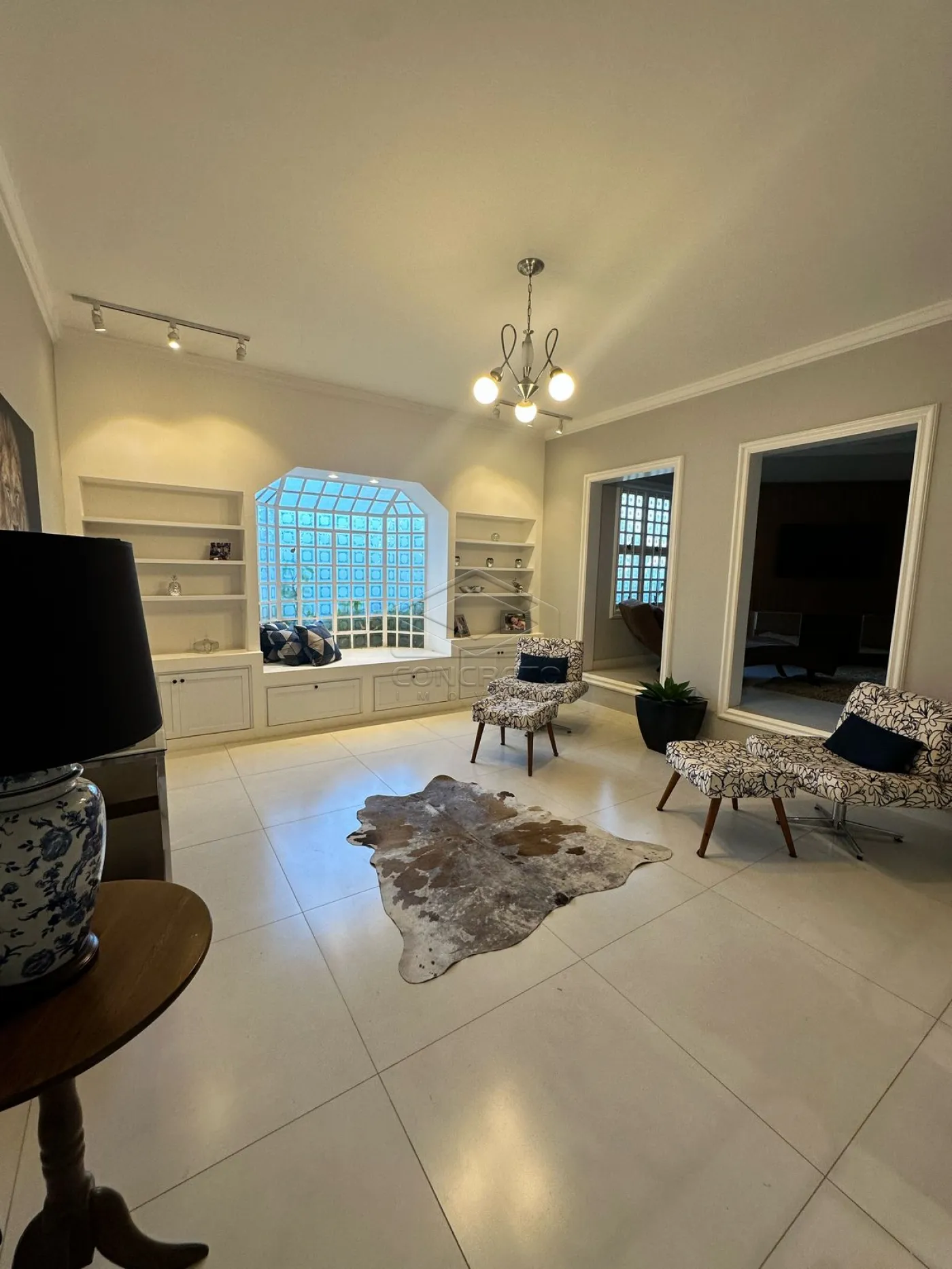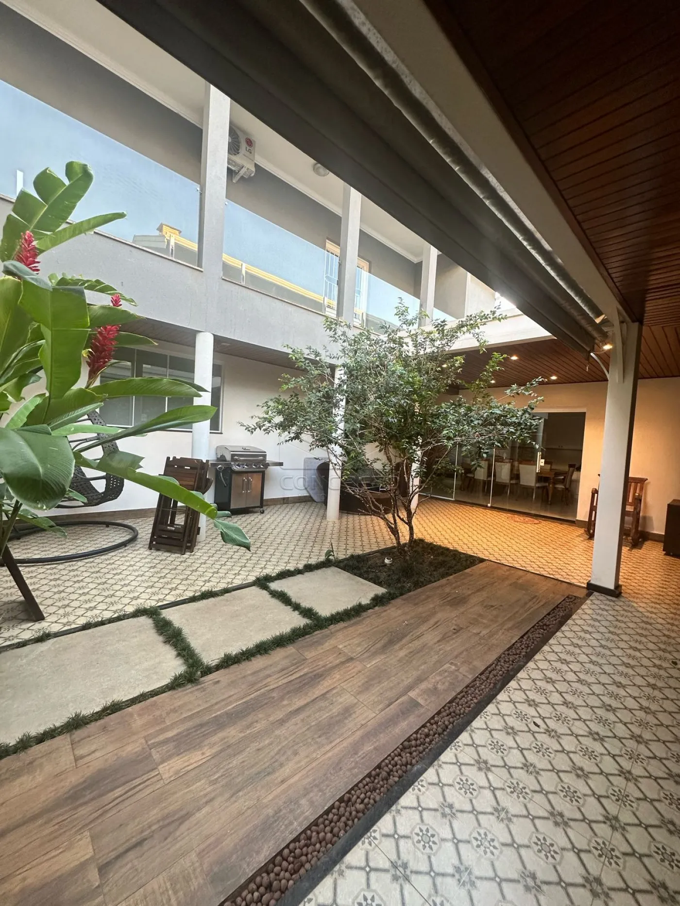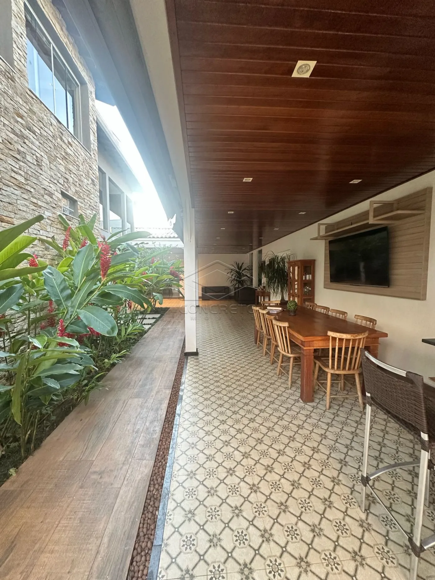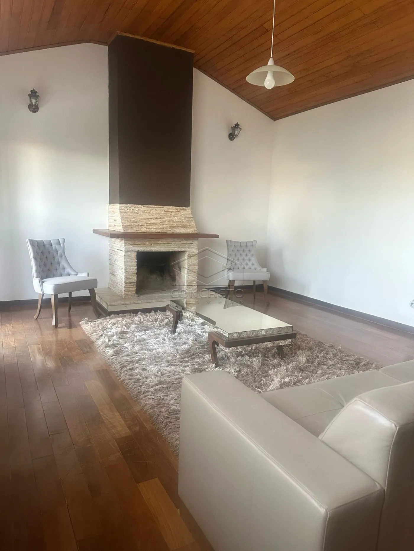 5 salas de TV, lareira e jantar;