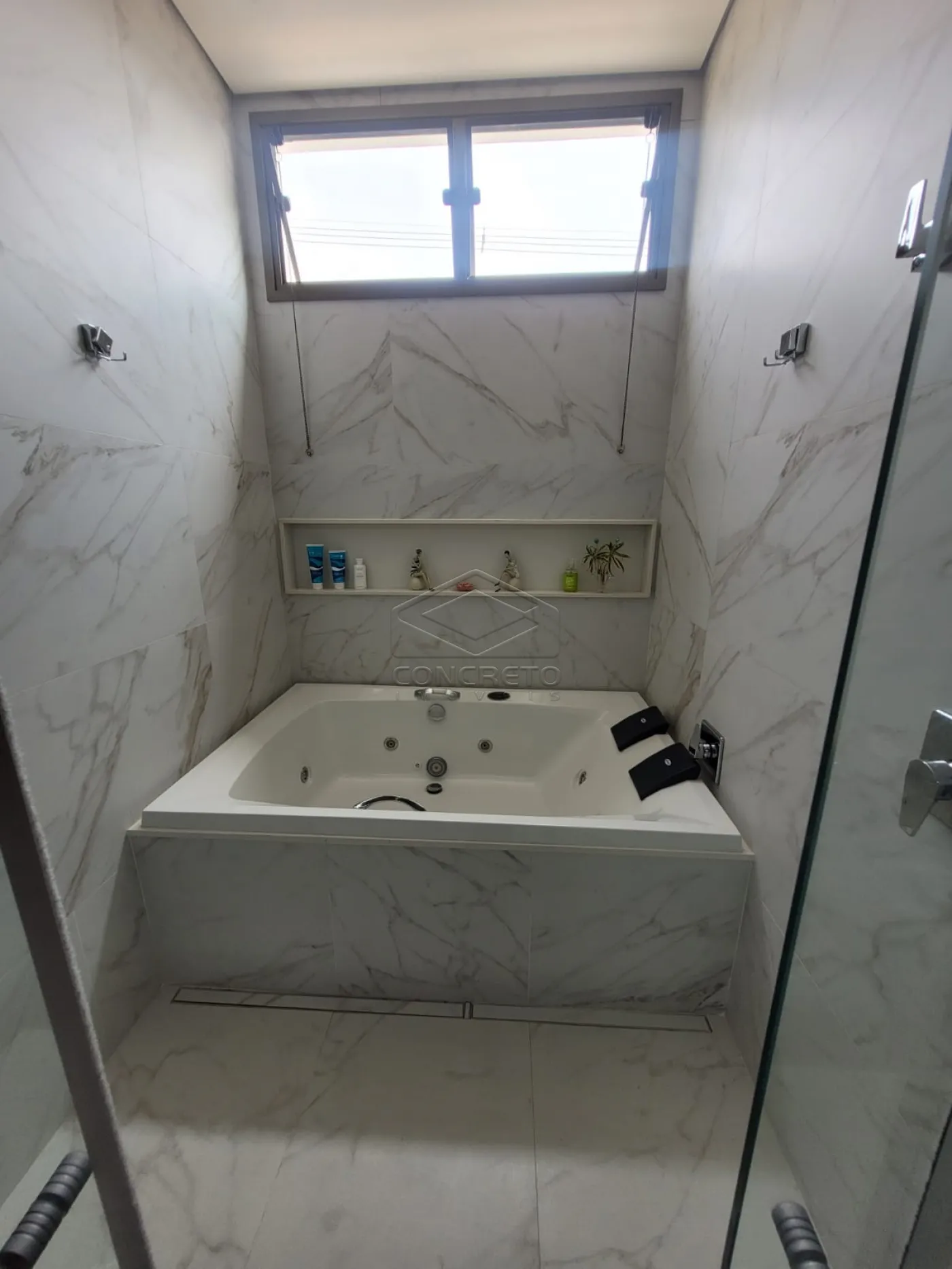 Dispõe de ar-condicionado na sala e em duas suítes, sendo uma delas com closet e hidromassagem.