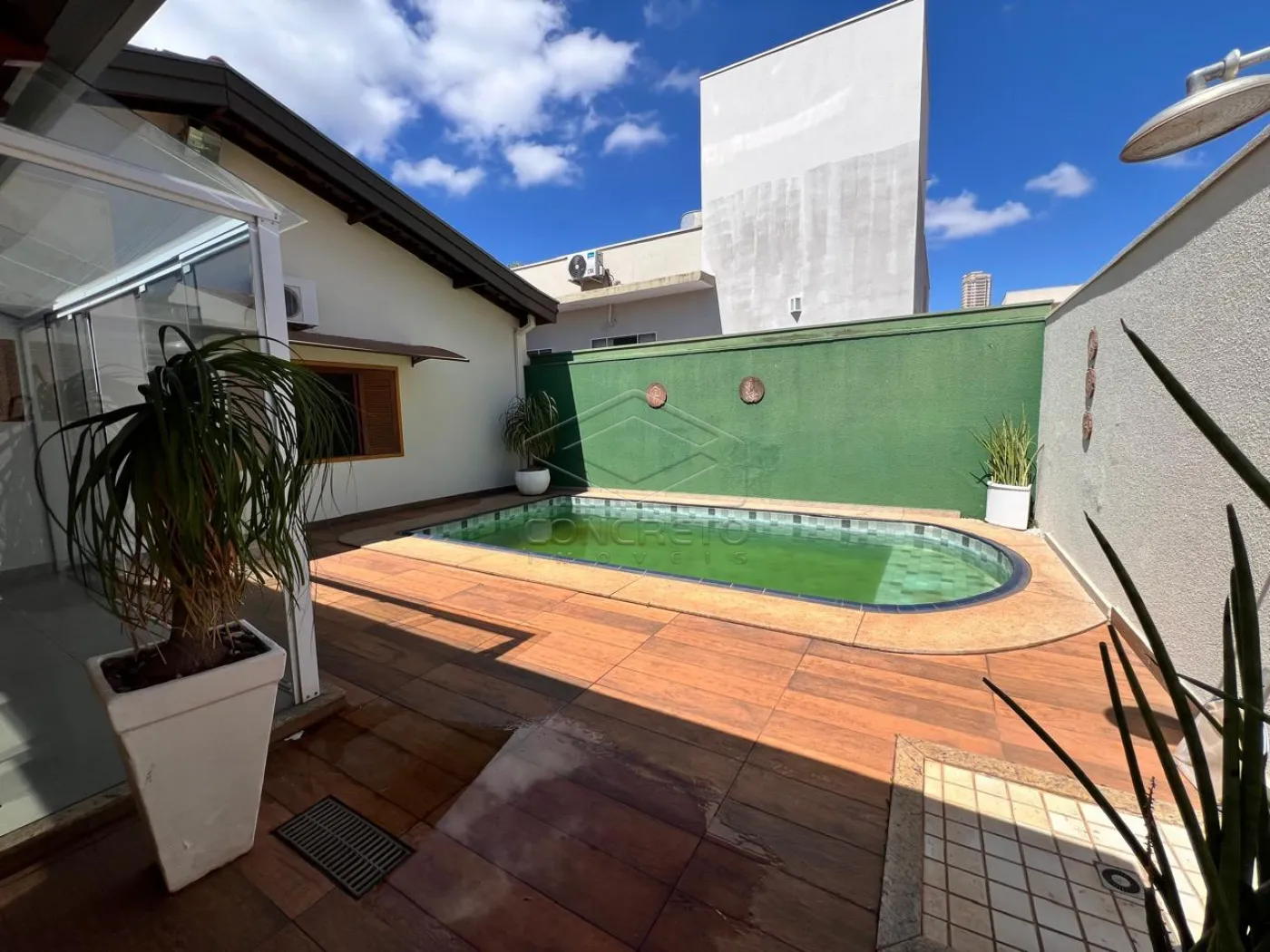 A residência conta ainda com um espaço gourmet, com churrasqueira , piscina, banheiro e um outro cômodo para depósito.