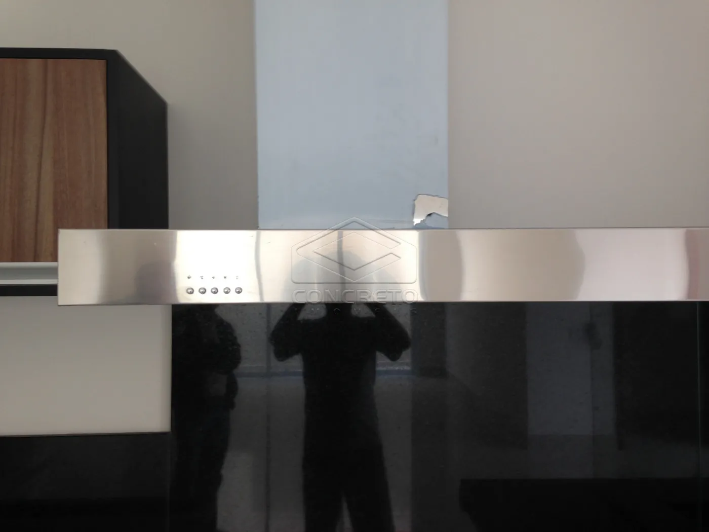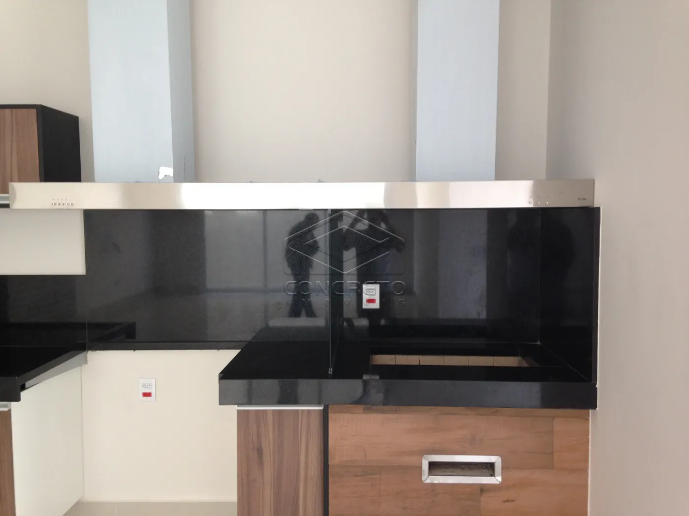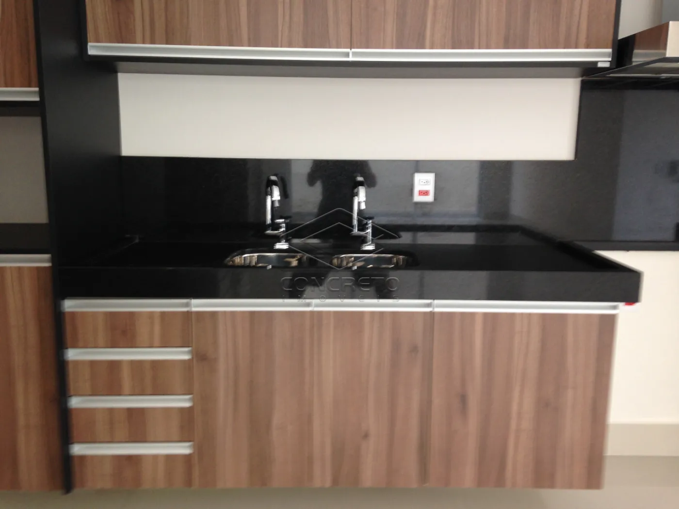 Gourmet integrado com pé direito alto e armários;