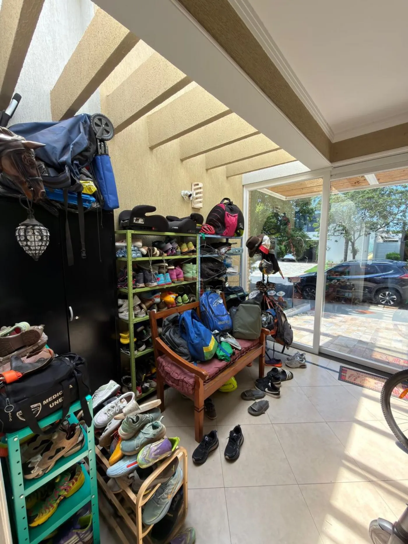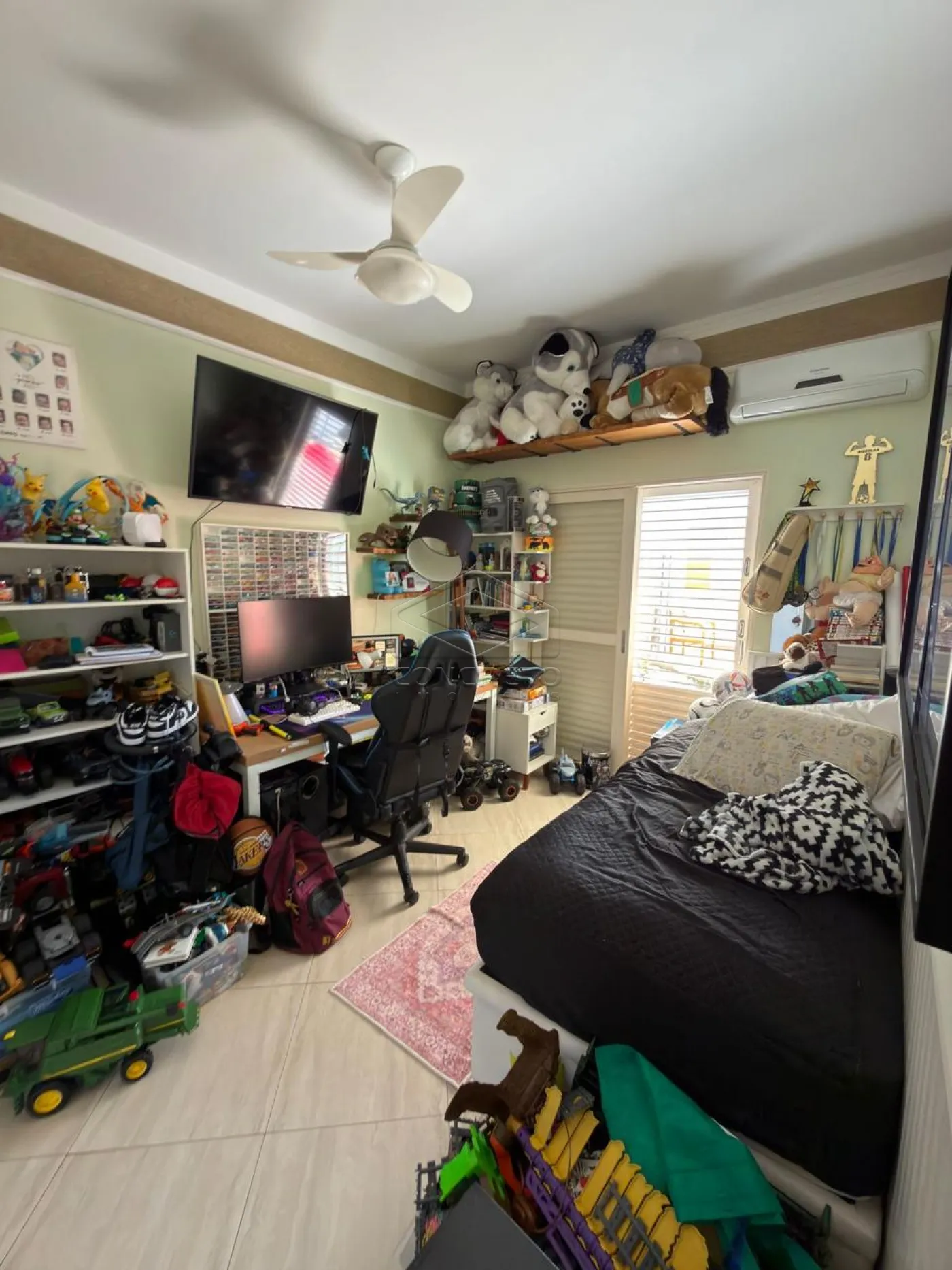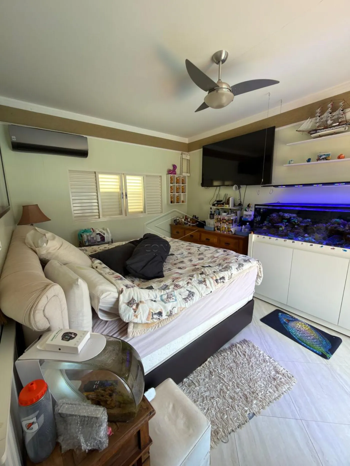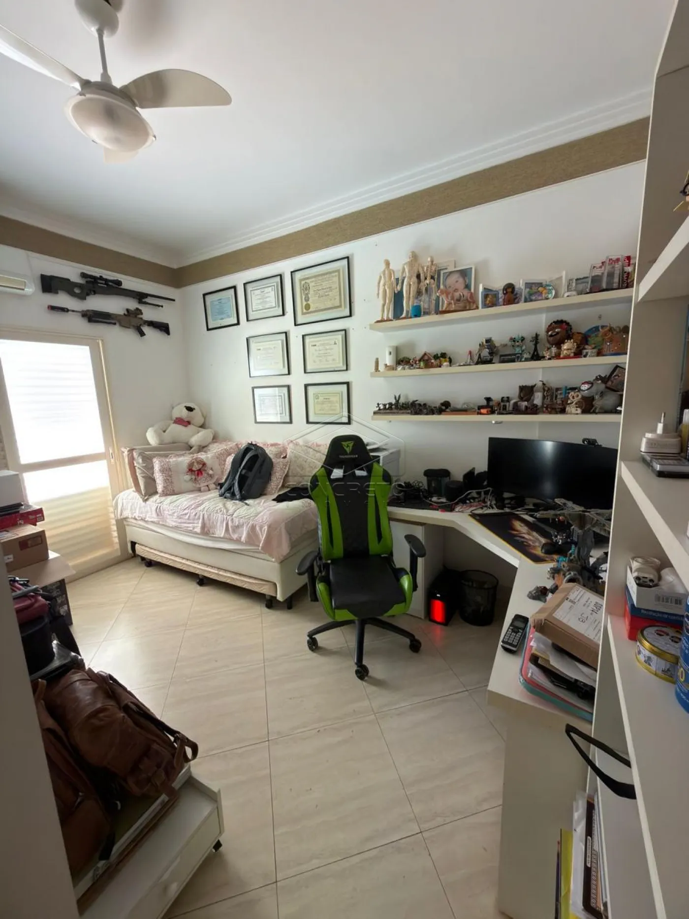 Na área íntima, o imóvel dispõe de quatro dormitórios, sendo duas suítes e uma suíte americana, garantindo privacidade e conforto aos moradores.