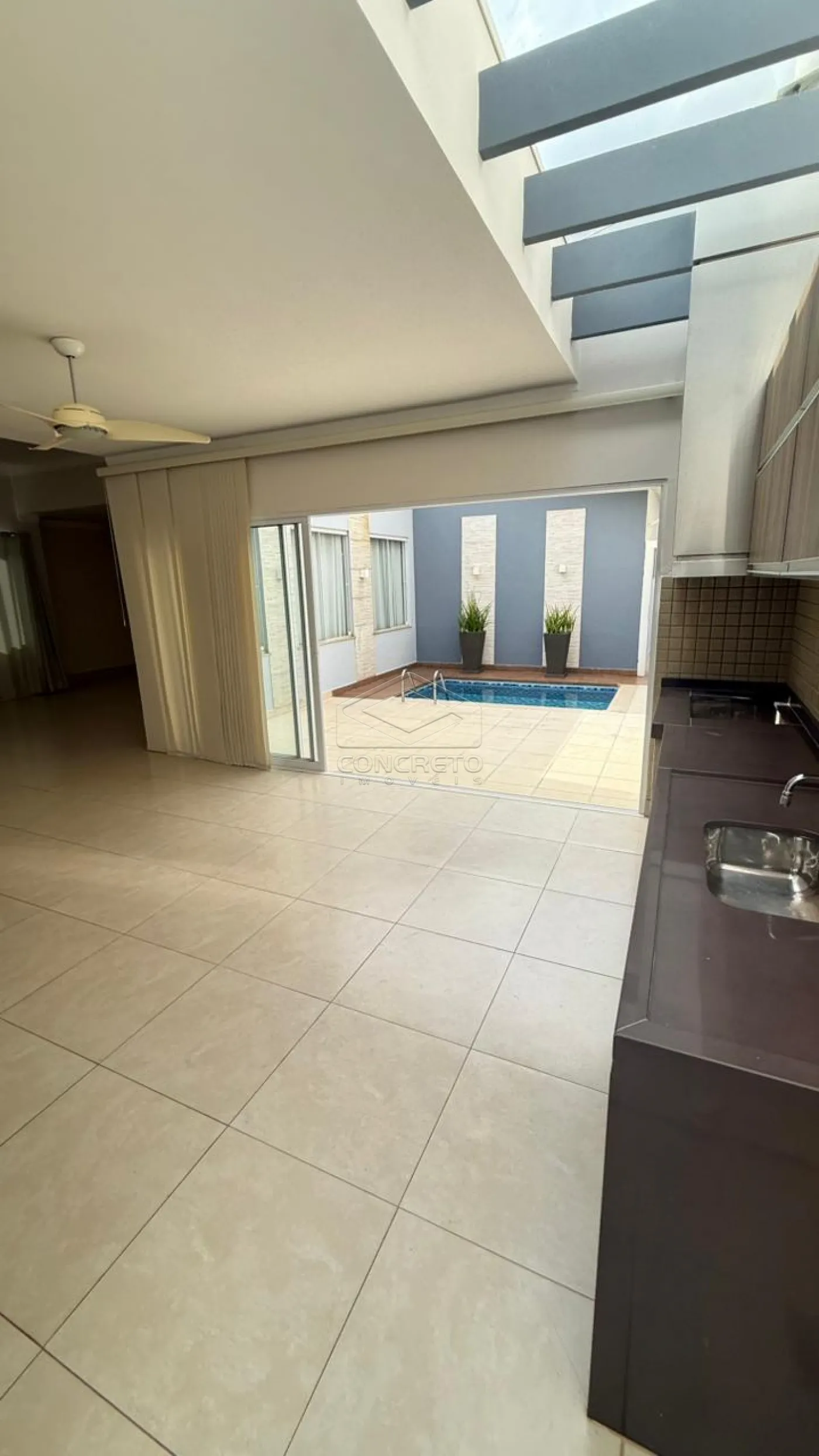 Venda de residência - Cyrela Estoril, Bauru/SP 3 suítes | 2 Garagens | Área Útil: 250m² Localização privilegiada. Esta incrível residência está disponível para venda no desejado condomínio Cyrela Estoril, em Bauru/SP. Com uma área útil de 250m², este imóvel oferece um espaço amplo com hall de entrada, home privativo com janela automatizada, painel para TV e ar condicionado, sala de jantar e descanso com pé direito duplo, cozinha gourmet com cooktop, forno, micro-ondas e churrasqueira para você e sua família desfrutarem, completa em armários planejados, e uma ótima piscina aquecida com hidromassagem e iluminação, acionadas por controle. A residência conta com 3 suítes, lavabo, escritório, lavanderia, despensa, janelas automatizadas e muito mais. Perfeita para acomodar toda a família com conforto e privacidade. Os quartos são bem iluminados e arejados, proporcionando um ambiente agradável para descanso.