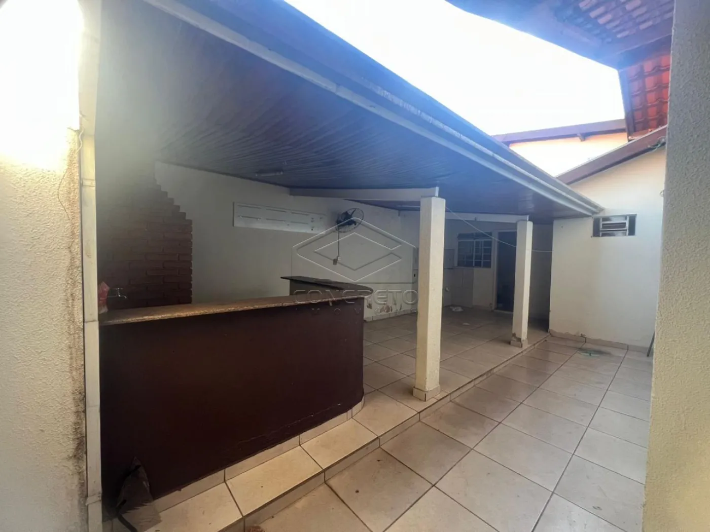 Casa com 3 dormitórios sendo 1 suíte e área de lazer coberta com churrasqueira e ventilador.