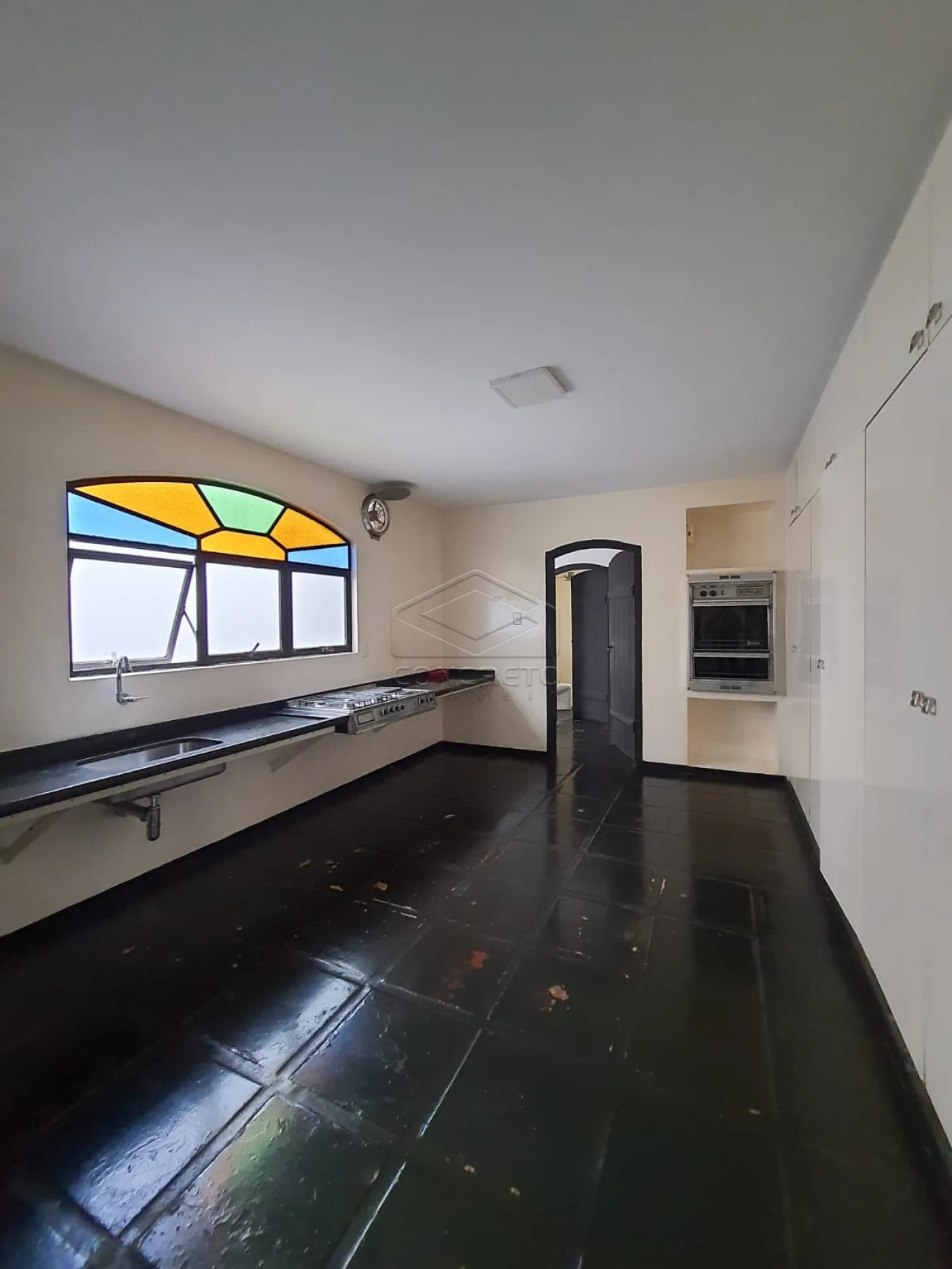 Conta com sala de estar com bar, ampla sala de jantar, cozinha completa em armários planejados, banheiro social e lavabo. Possui ainda quarto de funcionário com banheiro, agregando versatilidade ao imóvel.