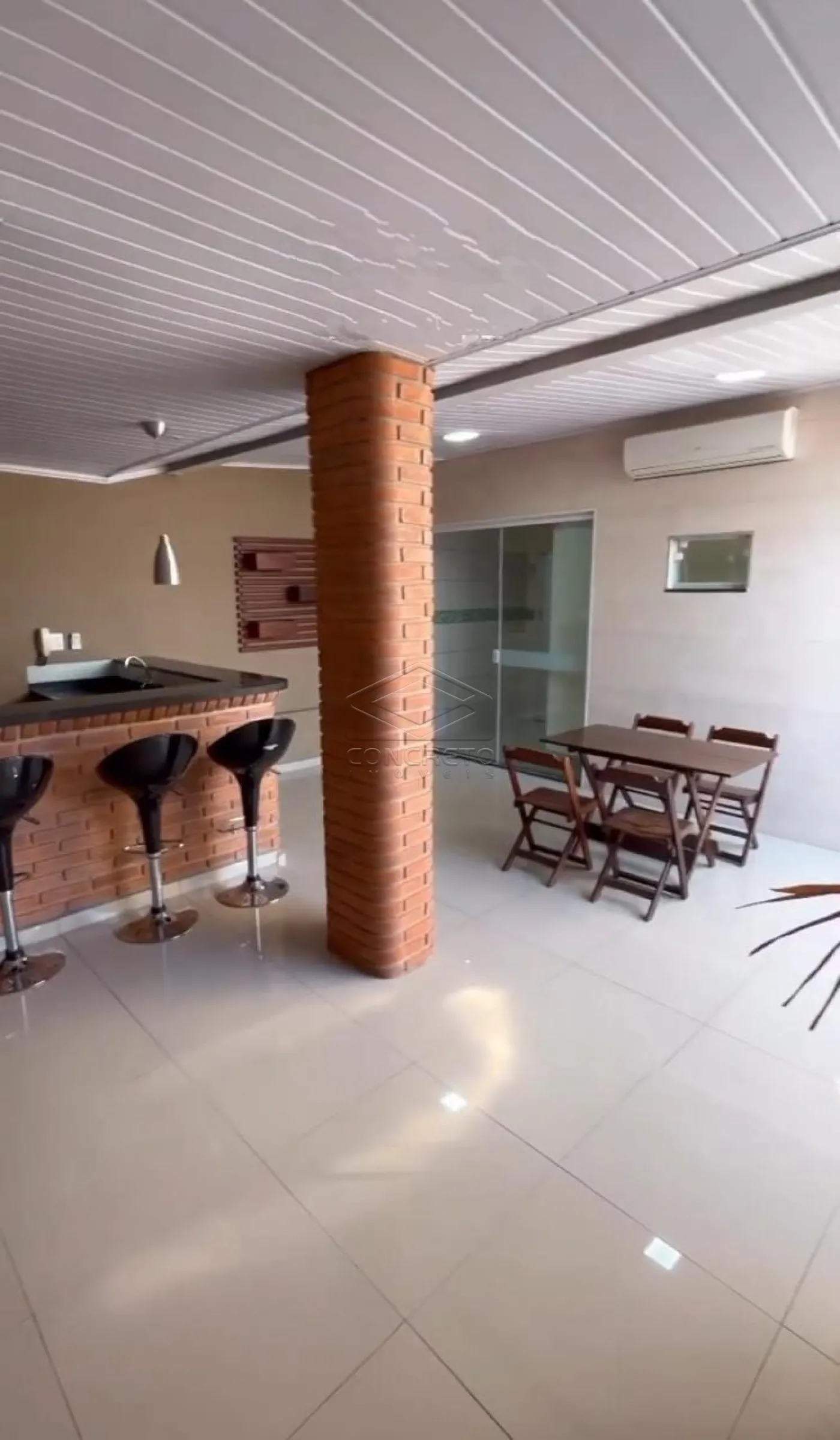 Como diferencial, o imóvel permanecerá com ar-condicionado no dormitório e na área gourmet, agregando conforto térmico ao dia a dia.