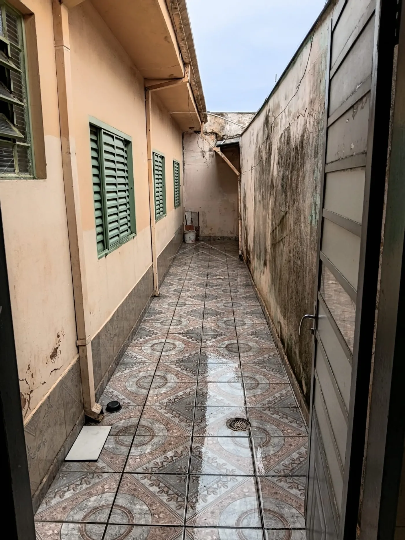 Residência com 3 dormitórios, cozinha, sala de estar e jantar, 2 banheiros, sendo um banheiro na parte externa.