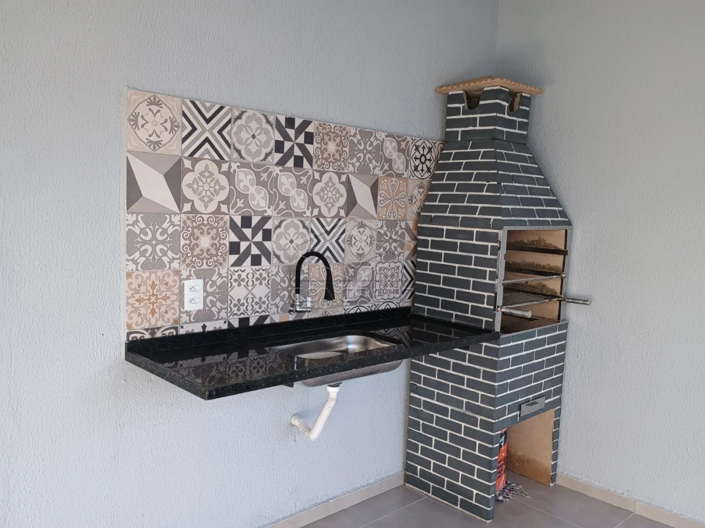 Área de lazer completa com churrasqueira, banheiro, ducha