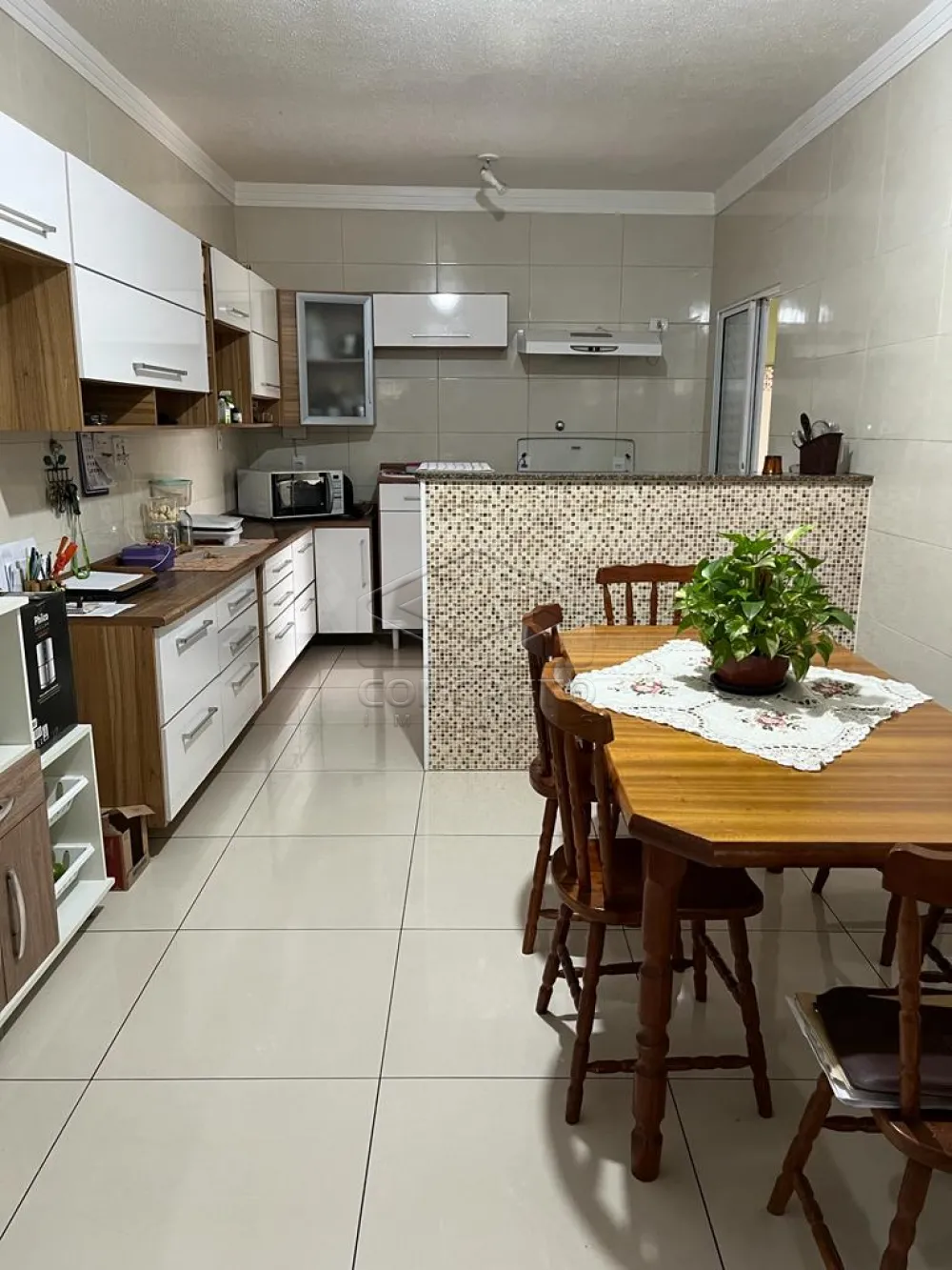 Cozinha com copa e armários;