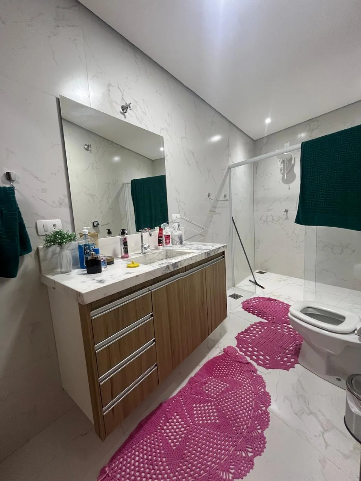 Excelente residência, 3 quartos, sendo 1 suíte, armário em 1 quarto, nos banheiros, na cozinha, quintal com churrasqueira, sala de tv, quarto de depósito, ducha e lavabo, mais uma suíte no andar de cima.