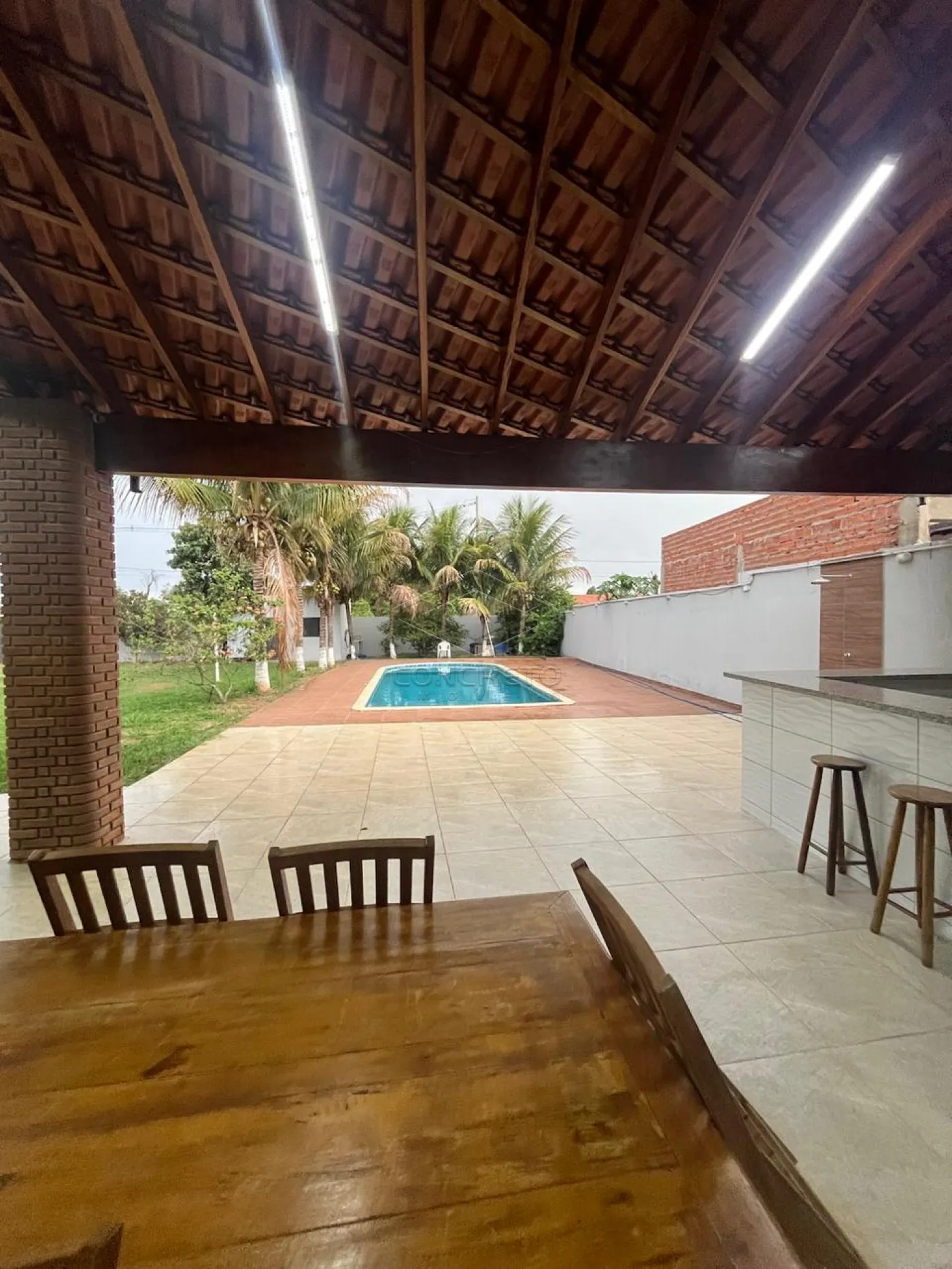 2 Quartos sendo 2 suites Sala, cozinha Ampla garagem Área de Lazer com piscina, churrasqueira coberta Ponto Comercial ja pronto para lanchonete com dois banheiros (sendo um adaptado para deficiente )