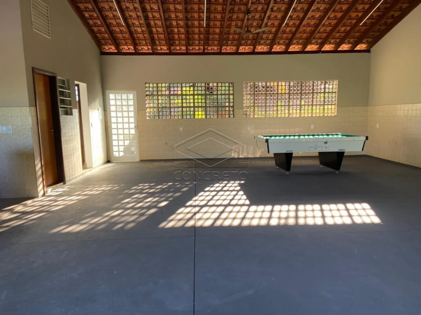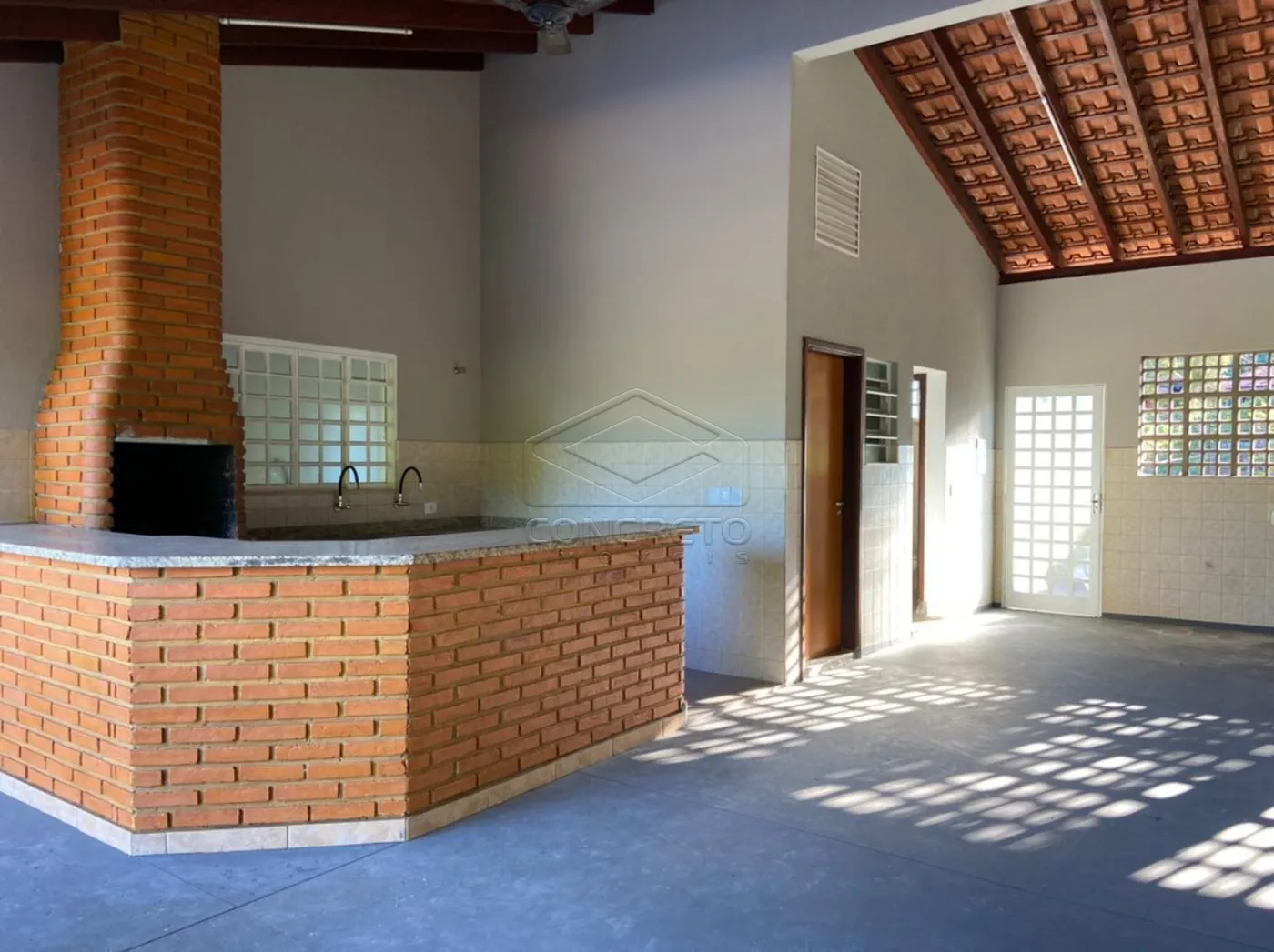 Duas suítes, sala e cozinhas integrada, salão anexo com churrasqueira e mais dois banheiros, feminino e masculino,