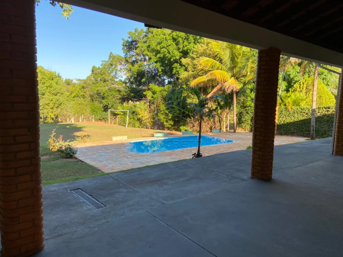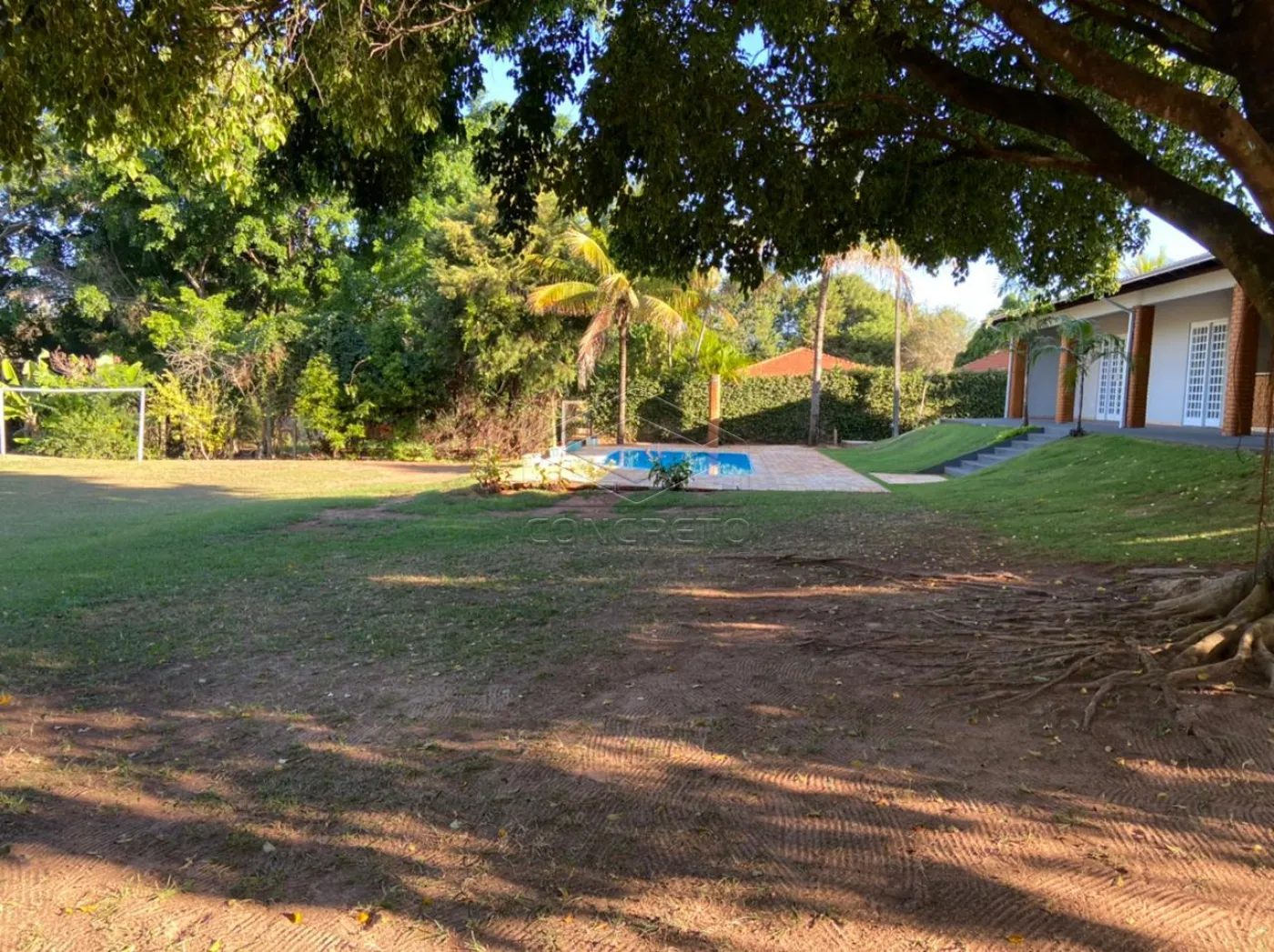 Piscina, campo de futebol e área pra canil toda alambrada.