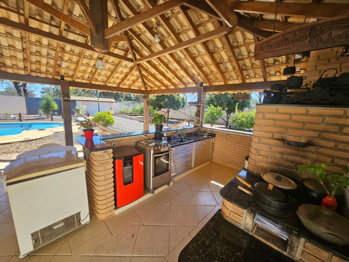 Linda chácara com 3 dorms (1 suíte), 3 banheiros, 2 ar-condicionados, armários planejados na cozinha, lavanderia, energia elétrica fotovoltáica, aquecimento solar nos banheiros e cozinha, piscina de 6m x 11m com 48 mil litros, sauna, quiosque com churrasqueira, forno para pizza e fogão à lenha, área de lazer e pomar.