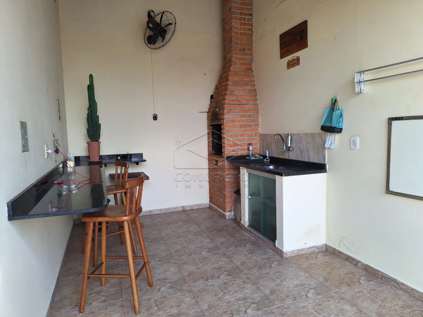 Área externa com churrasqueira e bancada