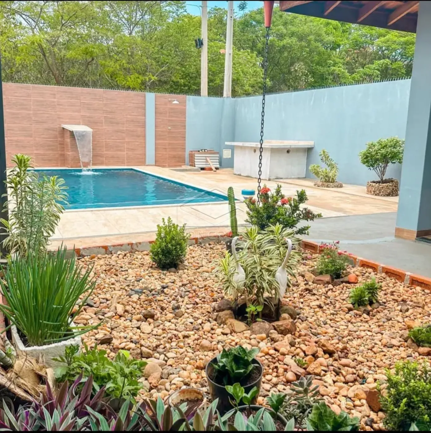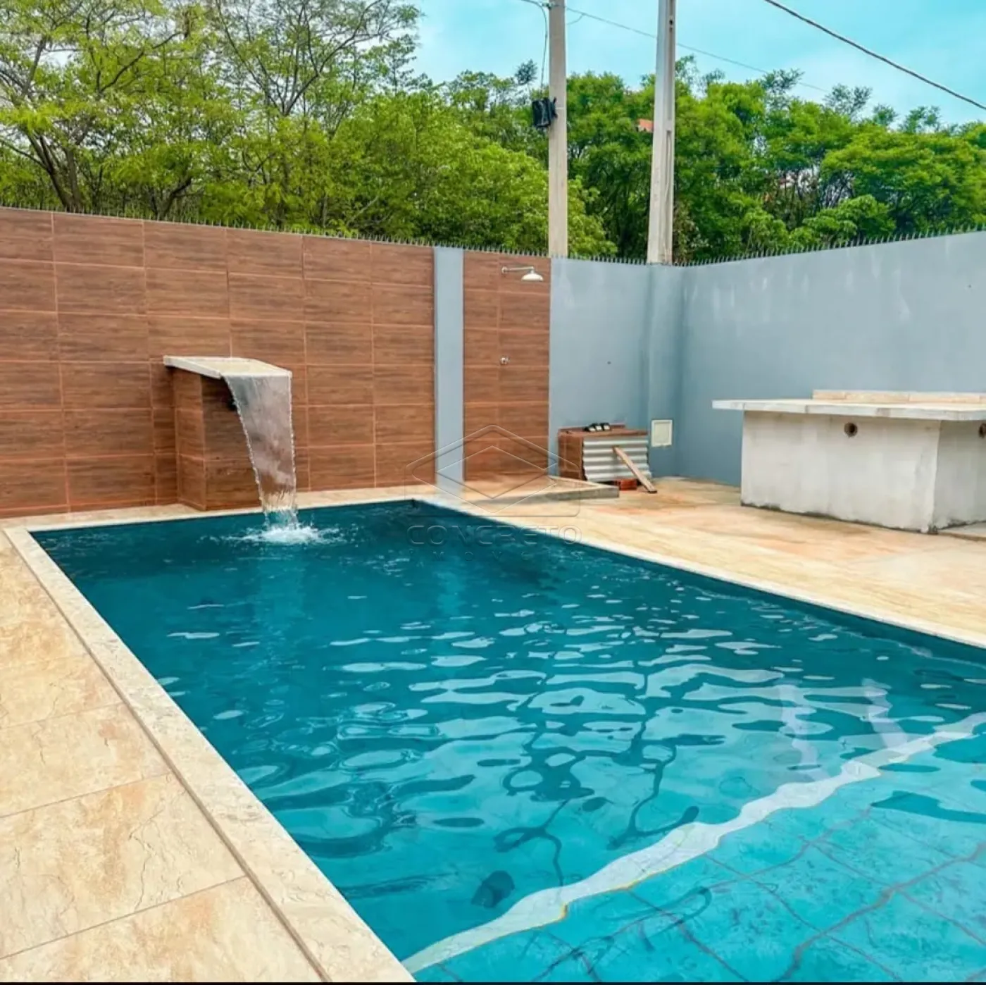 * ? Piscina de alvenaria com cascata