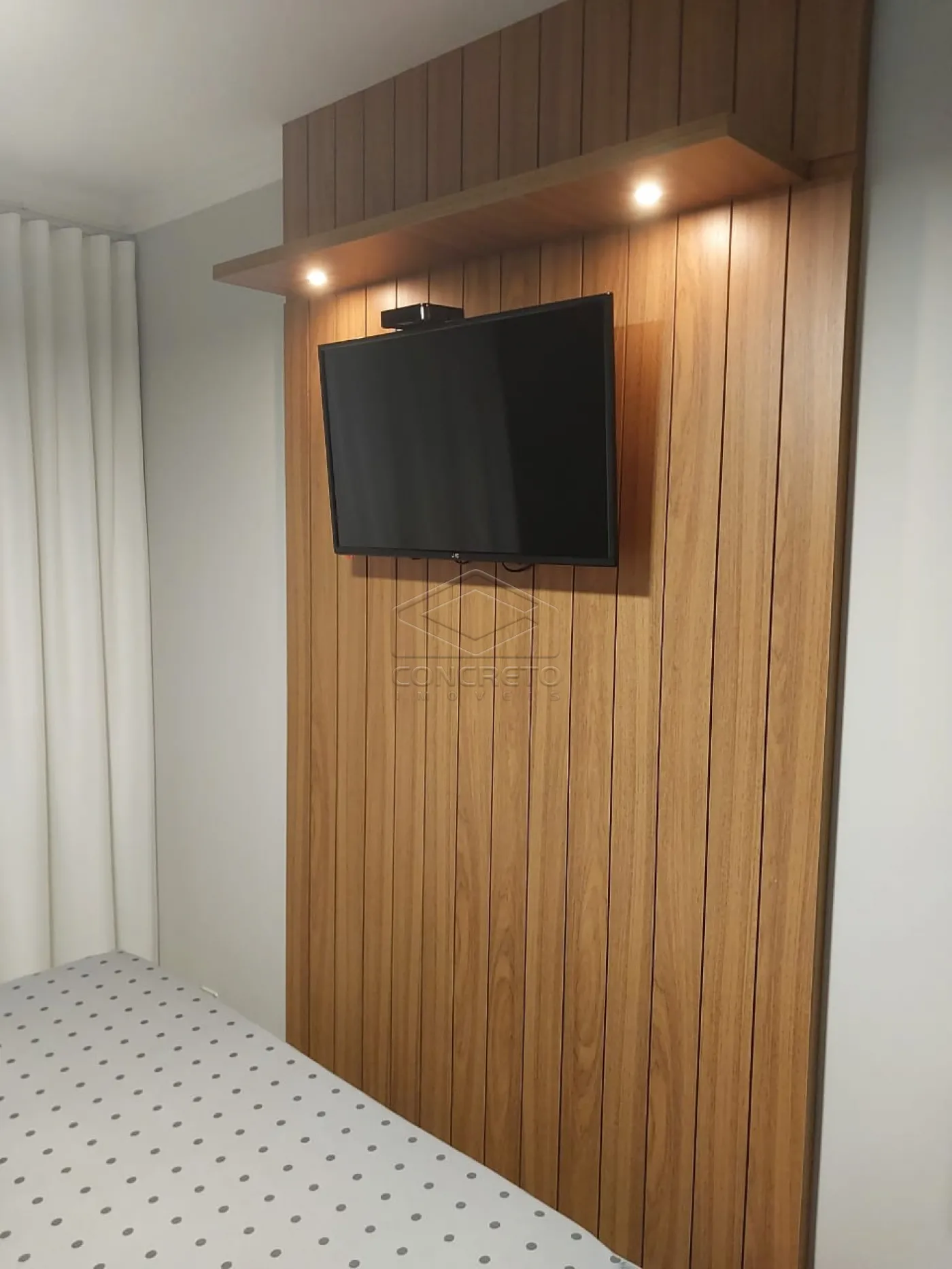Sala com painel, 02 lustres, espelho, sofá e cortina, possui ligação de ar condicionado pronto, na sala de jantar mesa com 04 cadeiras, na cozinha armário em 02 paredes(planejado), 01 cooktop, e persiana.