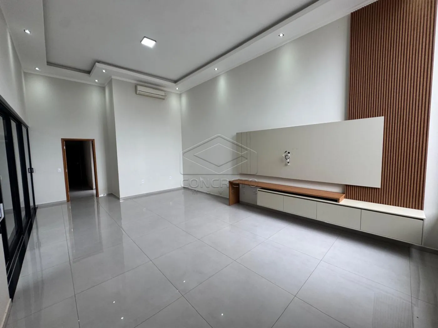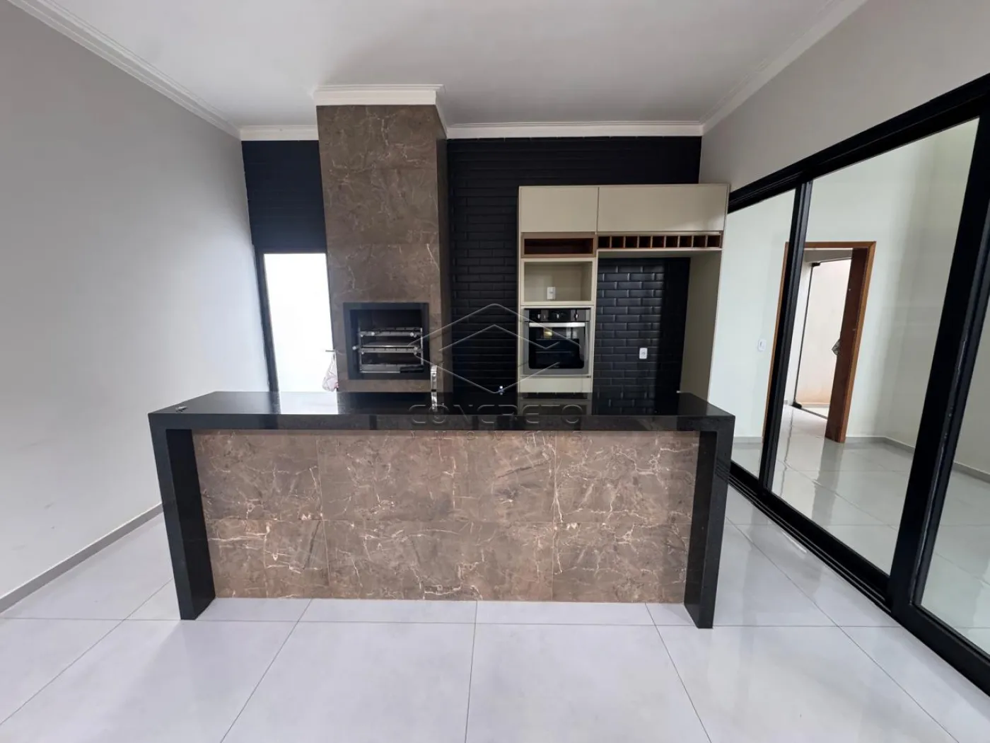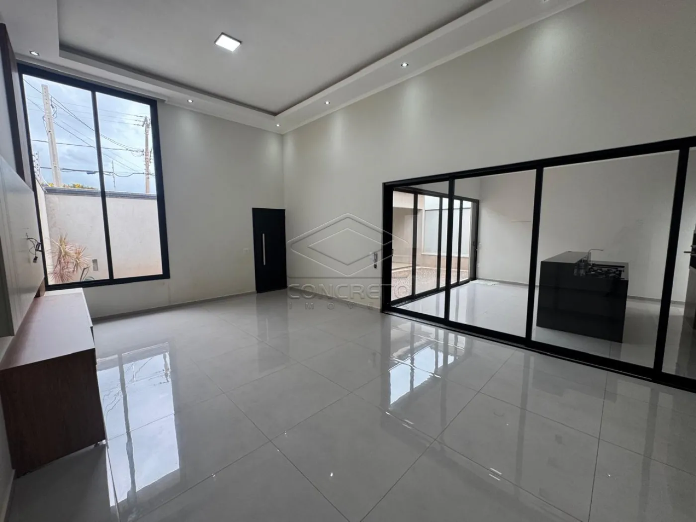 Acabamento em porcelanato, esquadrias de aluminio, pé direito alto