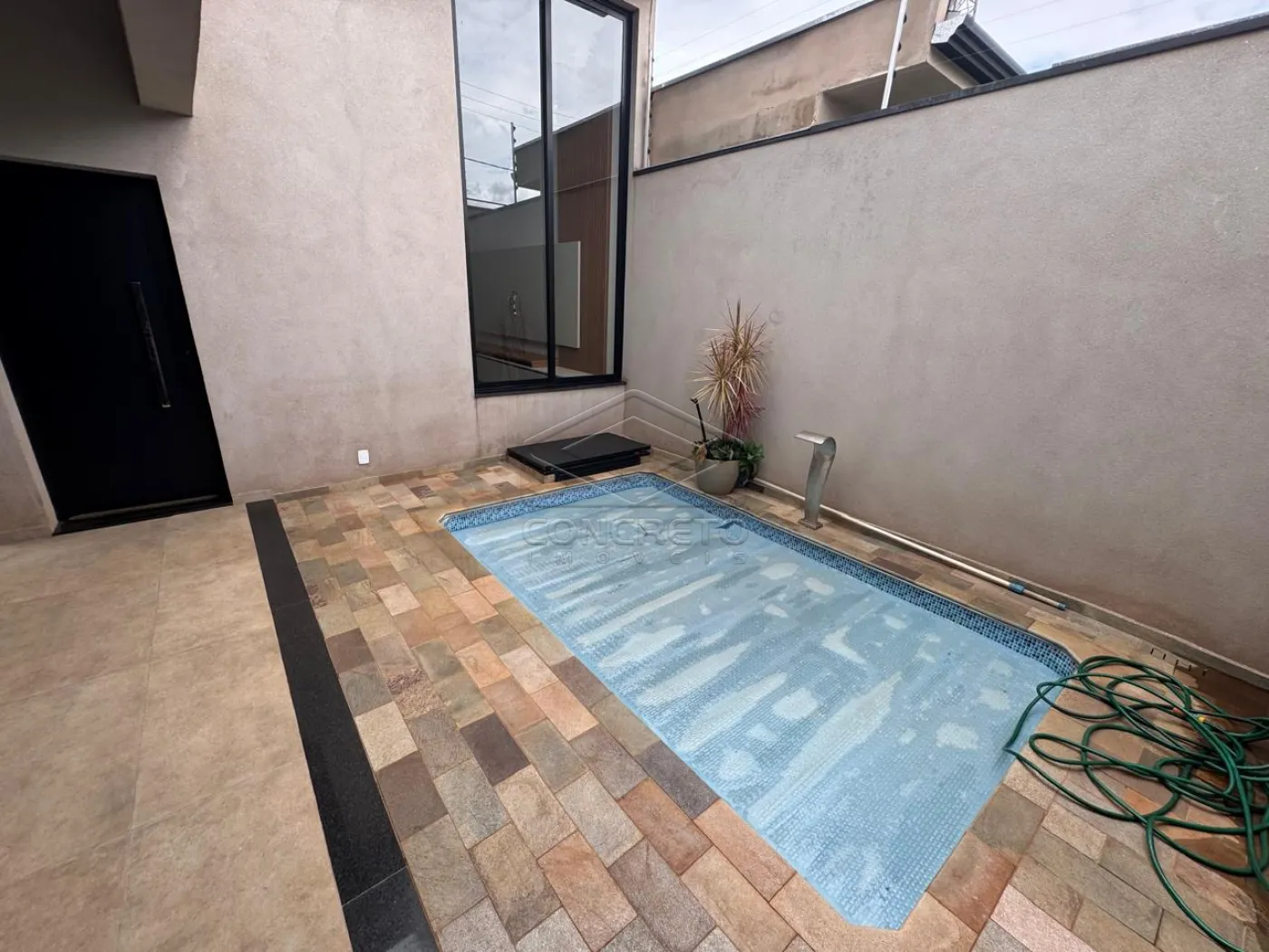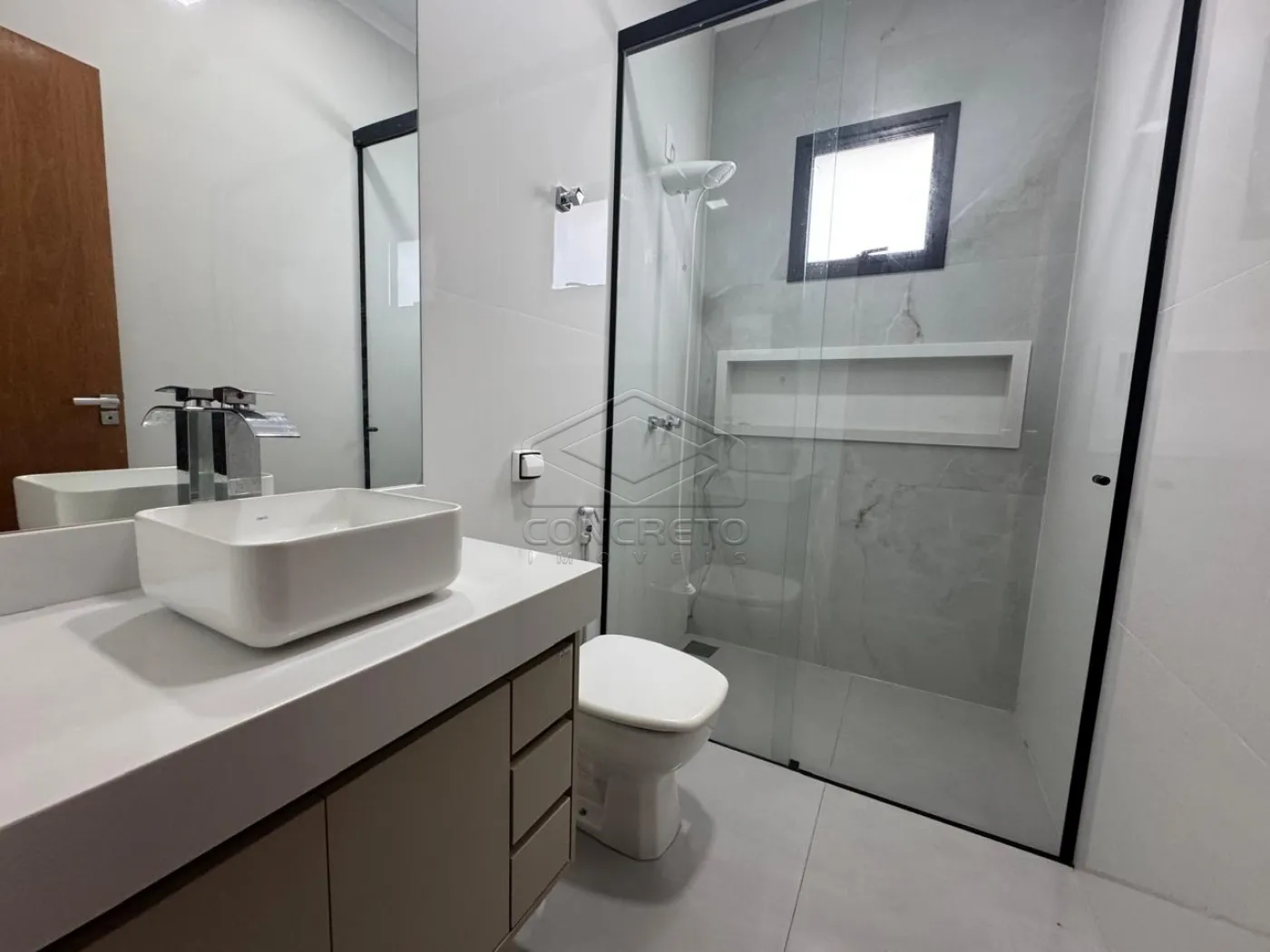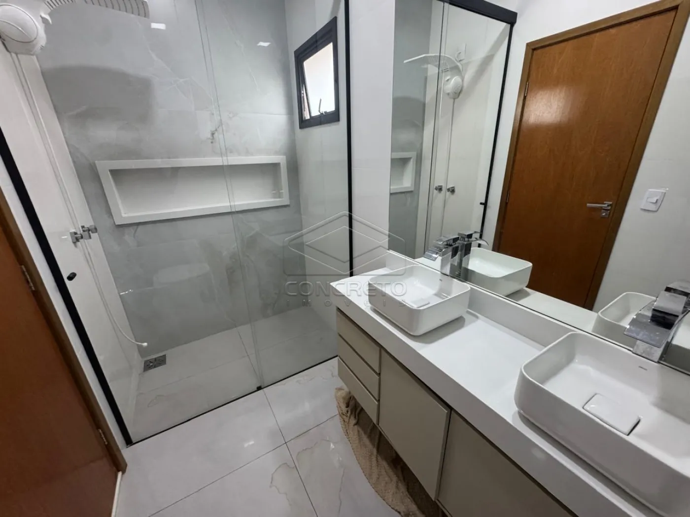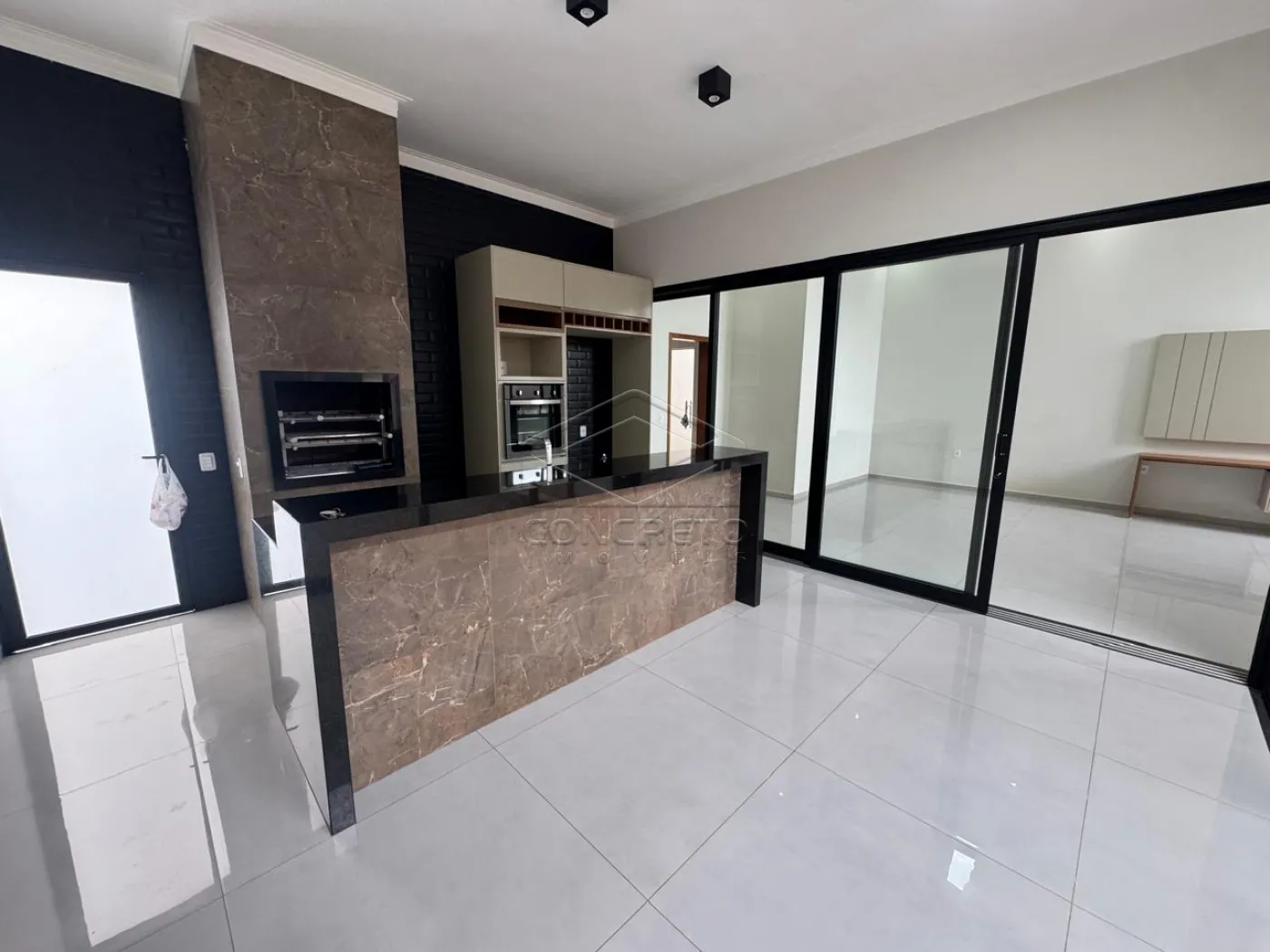 Acabamento em porcelanato, esquadrias de aluminio, pé direito alto
