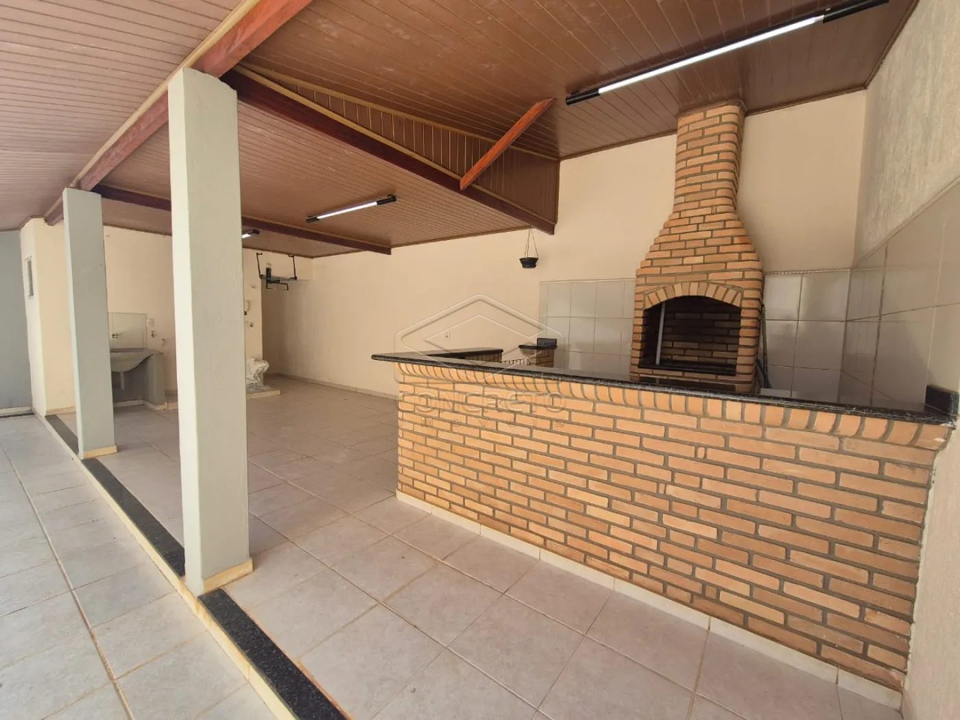Aréa de lazer com churrasqueira e quintal