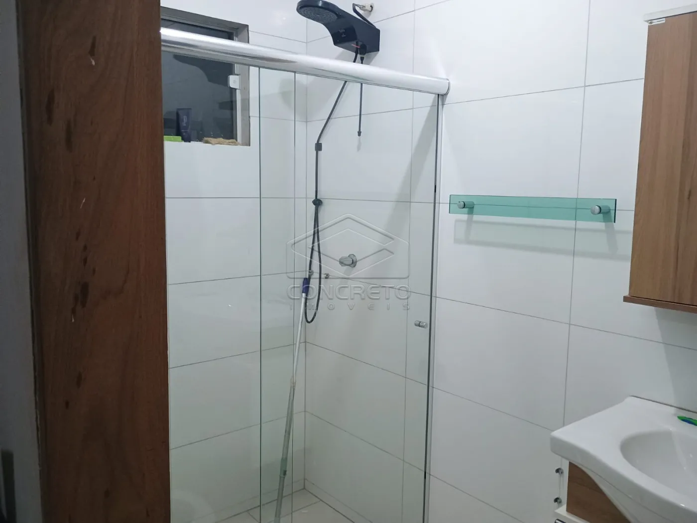 Casa com três quartos, sendo um suíte, banheiro social, sala e cozinha conjugada, garagem coberta para dois autos e descoberta para vários autos.